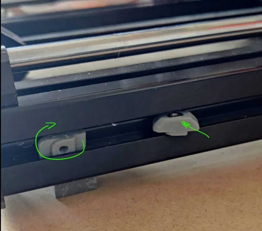 Gắn lỏng phần "Trượt vào khung" (để cho phép căn chỉnh sau) vào đai ốc t-slot bằng một con ốc hex M3 10mm.