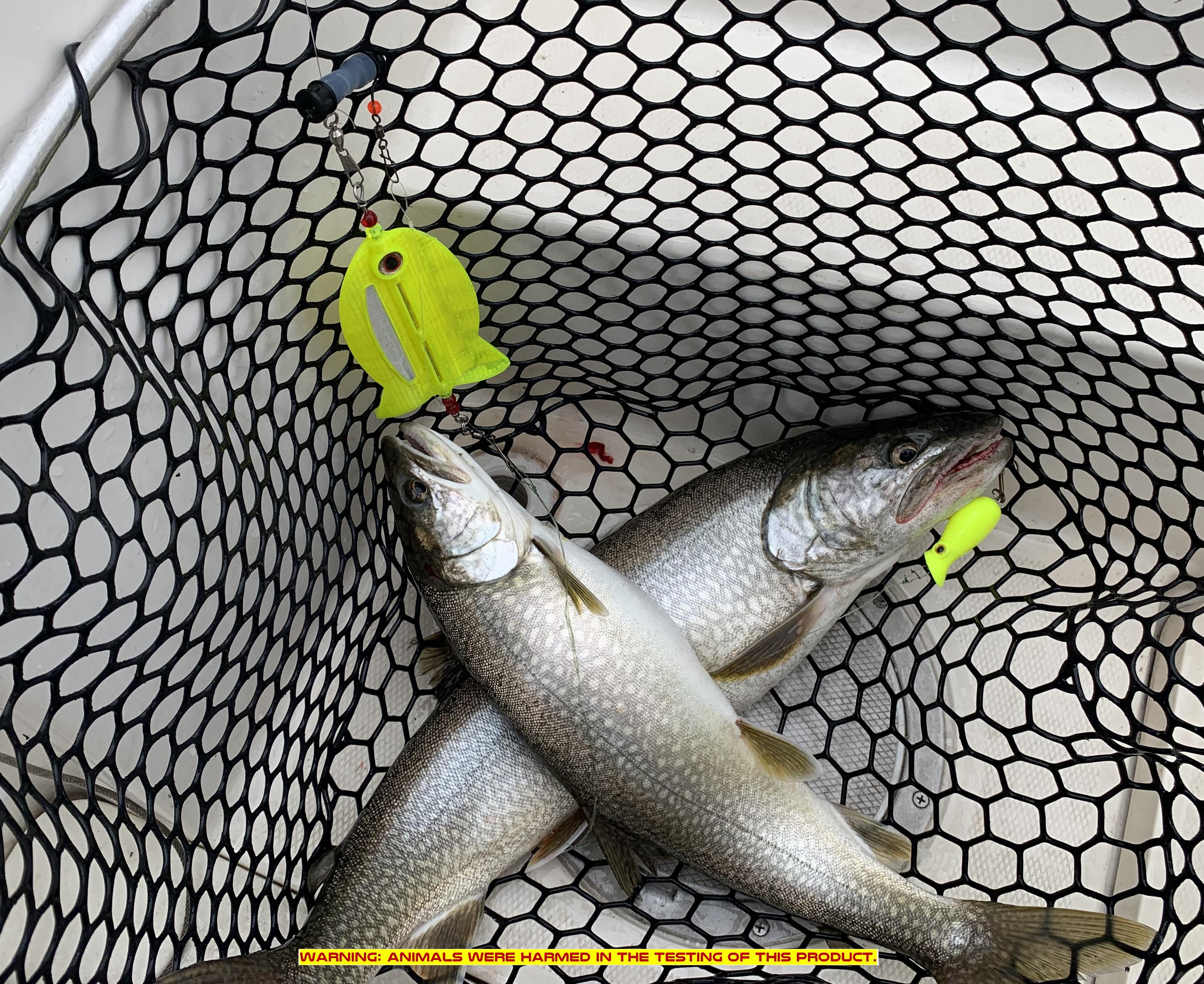 Một bộ thu hút cá quay chậm để câu rê, hoạt động giống như một máy nháy hình tam giác. Sử dụng dây thép hoặc dây câu nặng và thêm hạt. Bạn có thể sơn nó, thêm mắt 3D và băng giả mồi. Thay đổi kích thước và làm nó ở các kích cỡ khác nhau. Cũng quay trong gió như một vật trang trí.