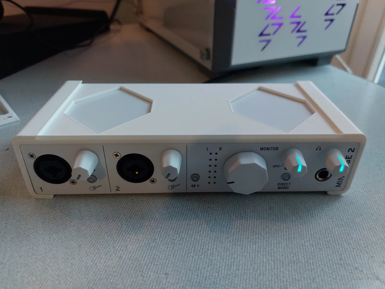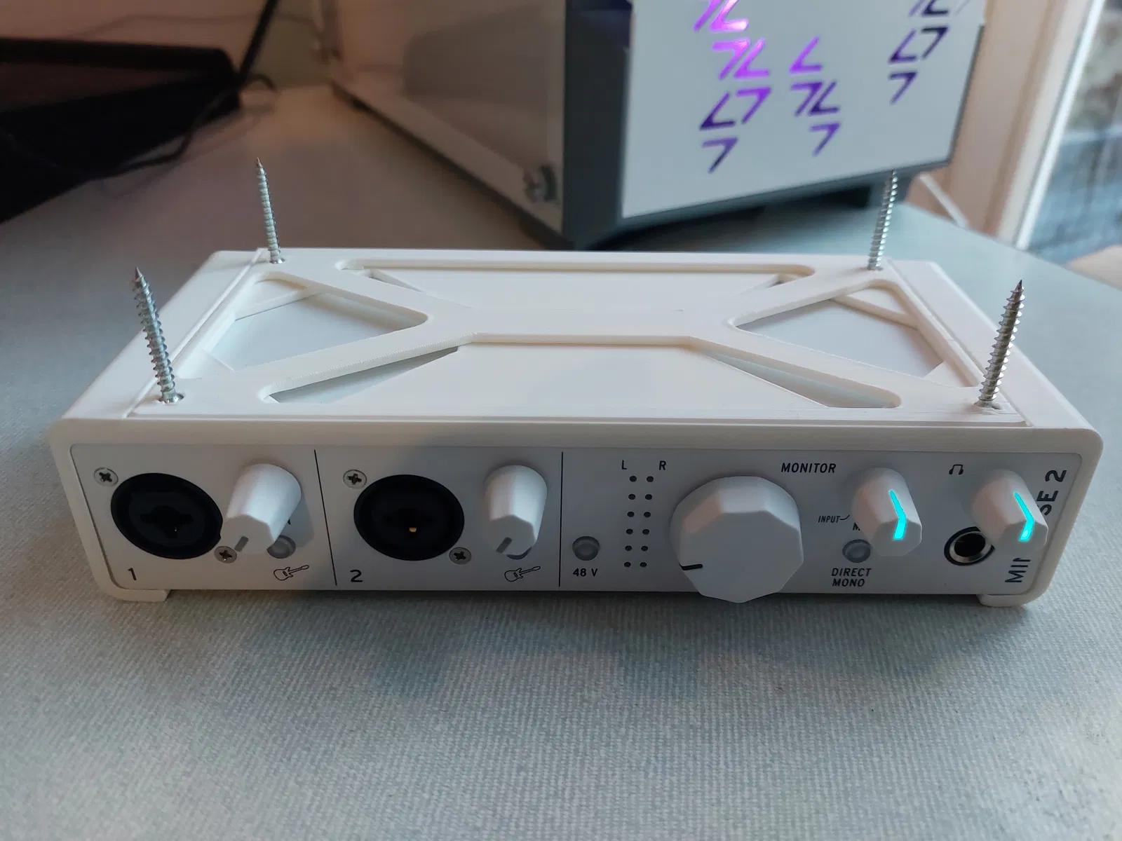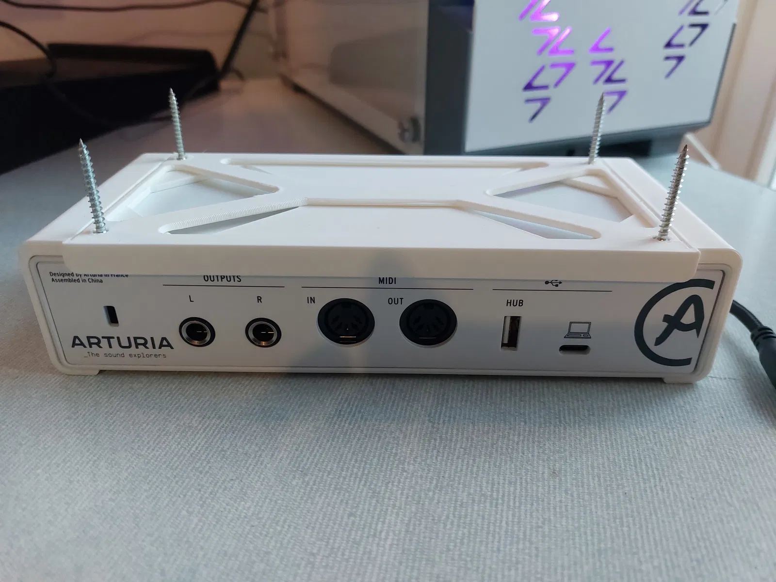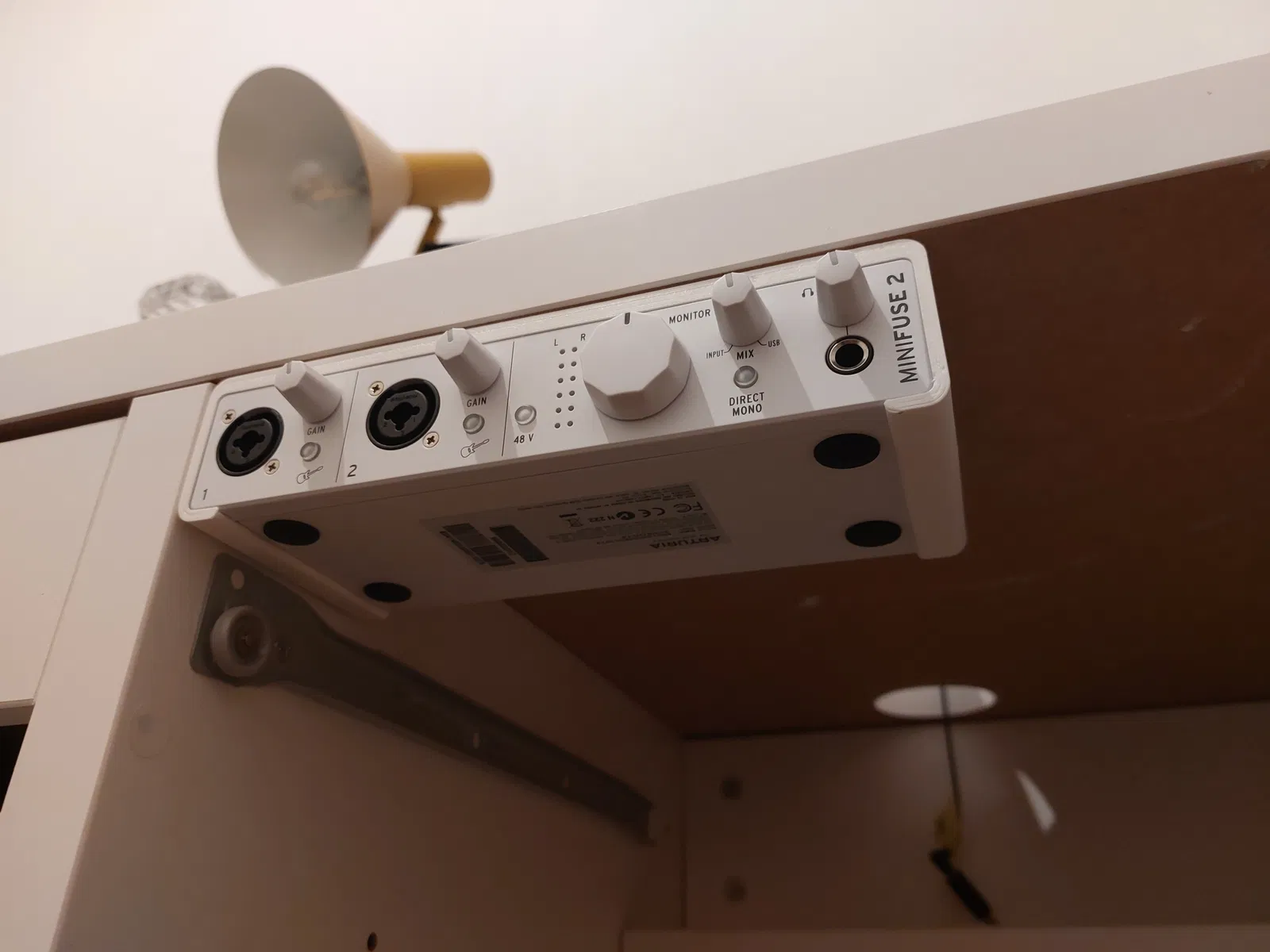 Bộ lắp ráp vỏ/đế gắn dưới bàn gồm 2 phần để gắn giao diện âm thanh Arturia Minifuse 2 bằng vít. Bản chỉnh sửa từ @Ulysse98. Hướng dẫn in và lắp đặt chi tiết kèm theo.