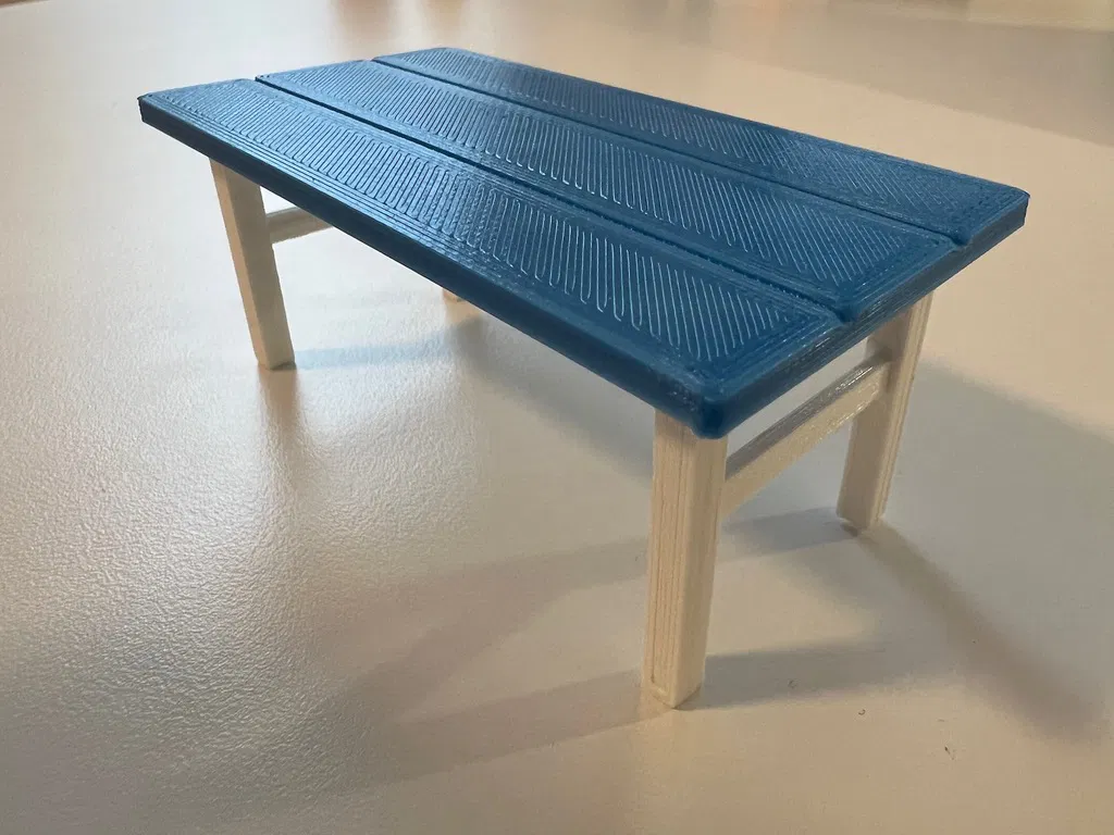Bàn với bốn ghế làm phụ kiện cho nhà búp bê. Tỉ lệ các bộ phận để phù hợp với nhu cầu của bạn. Kích thước hiện tại tương thích với các sản phẩm của một nhà sản xuất đồ chơi nổi tiếng.