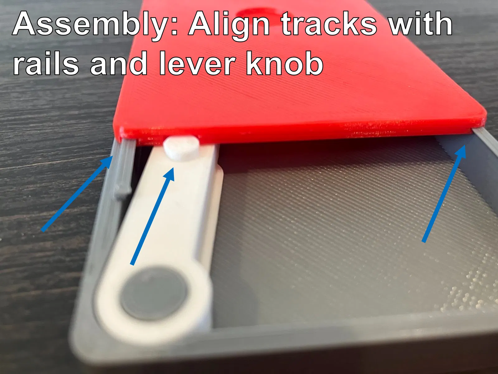 - Bạn chỉ cần in 1 đế, 1 nắp và 1 cần gạt. Xem các phần OPERATION (Khóa và Biến thể Trả về) để biết chi tiết về sự khác biệt trong chức năng giữa các loại nắp. Hình ảnh, bao gồm cả ảnh GIF, hiển thị nắp "khóa giữa".