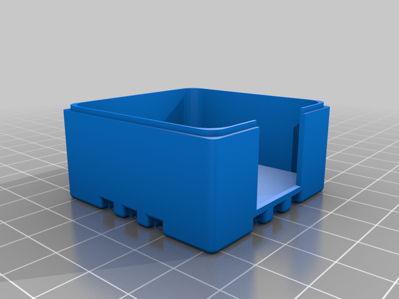 Vỏ trên cũng cần supports cho các lỗ vít. Tuy nhiên, việc loại bỏ supports khỏi các rãnh fischertechnik lân cận có thể rất khó khăn, mặc dù chúng in tốt mà không cần supports. Tôi khuyên bạn nên sử dụng tính năng mới (nhưng hơi cồng kềnh) của Cura để chặn supports nhằm ngăn chặn điều này.