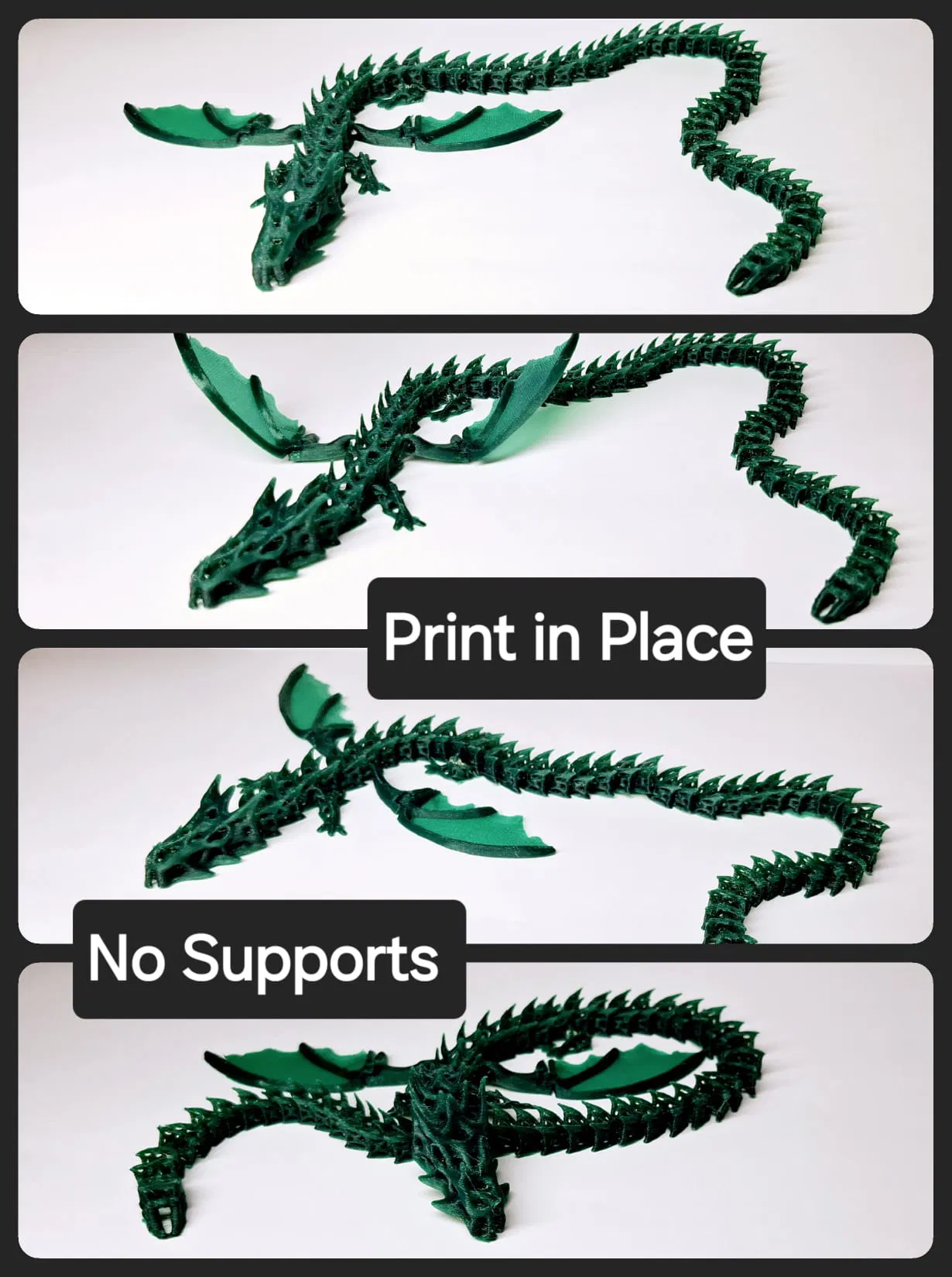 Bộ xương rồng cánh cử động, in liền độc đáo. Đảm bảo keo dính tốt trên bàn in để có kết quả tốt nhất. Đã thử nghiệm thành công, cho ra sản phẩm đẹp mắt. Chất liệu PLA, in không cần hỗ trợ. Thích hợp cho anh em đam mê 3D printing.