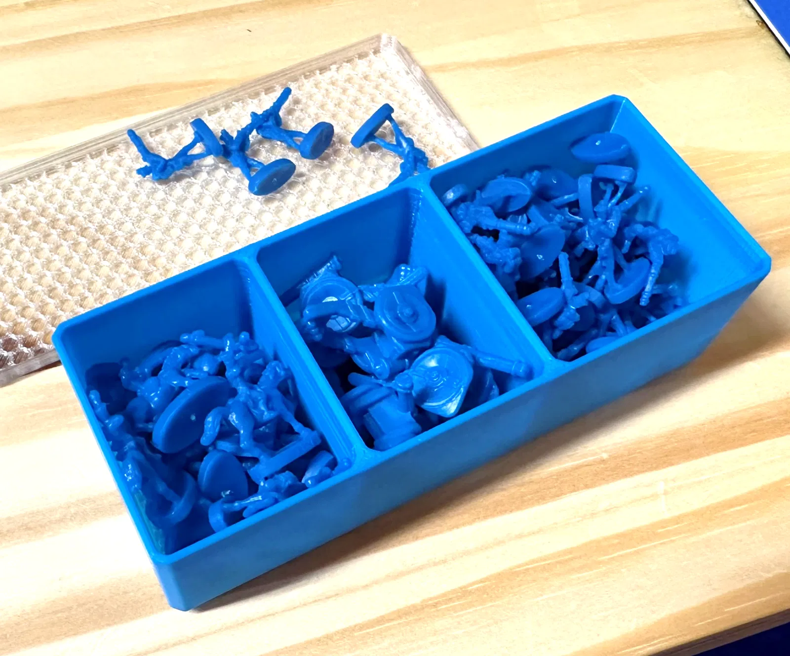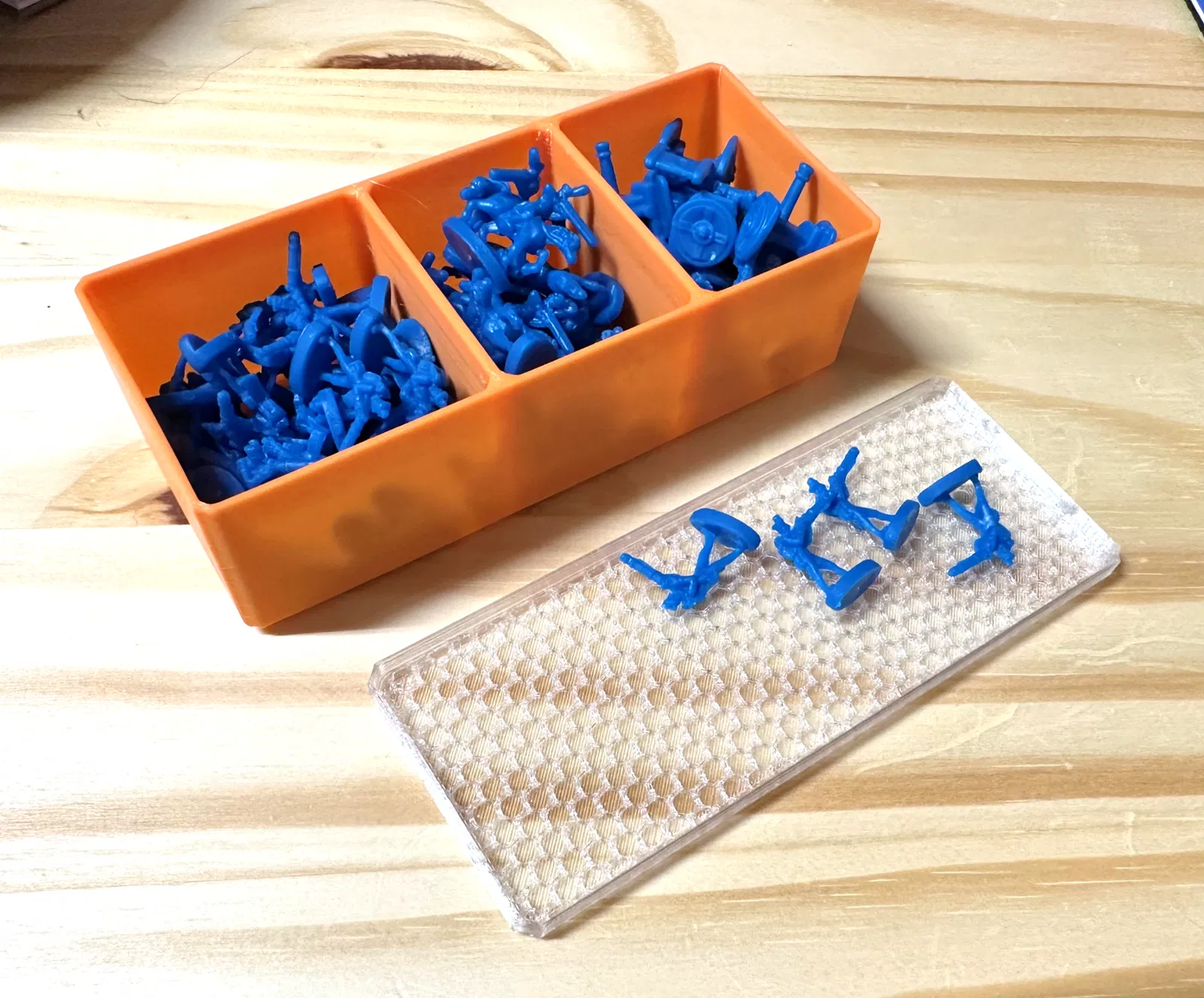 Hộp 3 ngăn đựng quân cờ cho board game Risk, thay thế hộp giấy cũ. Bao gồm hộp, nắp và tùy chọn hộp có mấu chống cong vênh. Nắp in PETG trong suốt tạo hiệu ứng đẹp mắt.