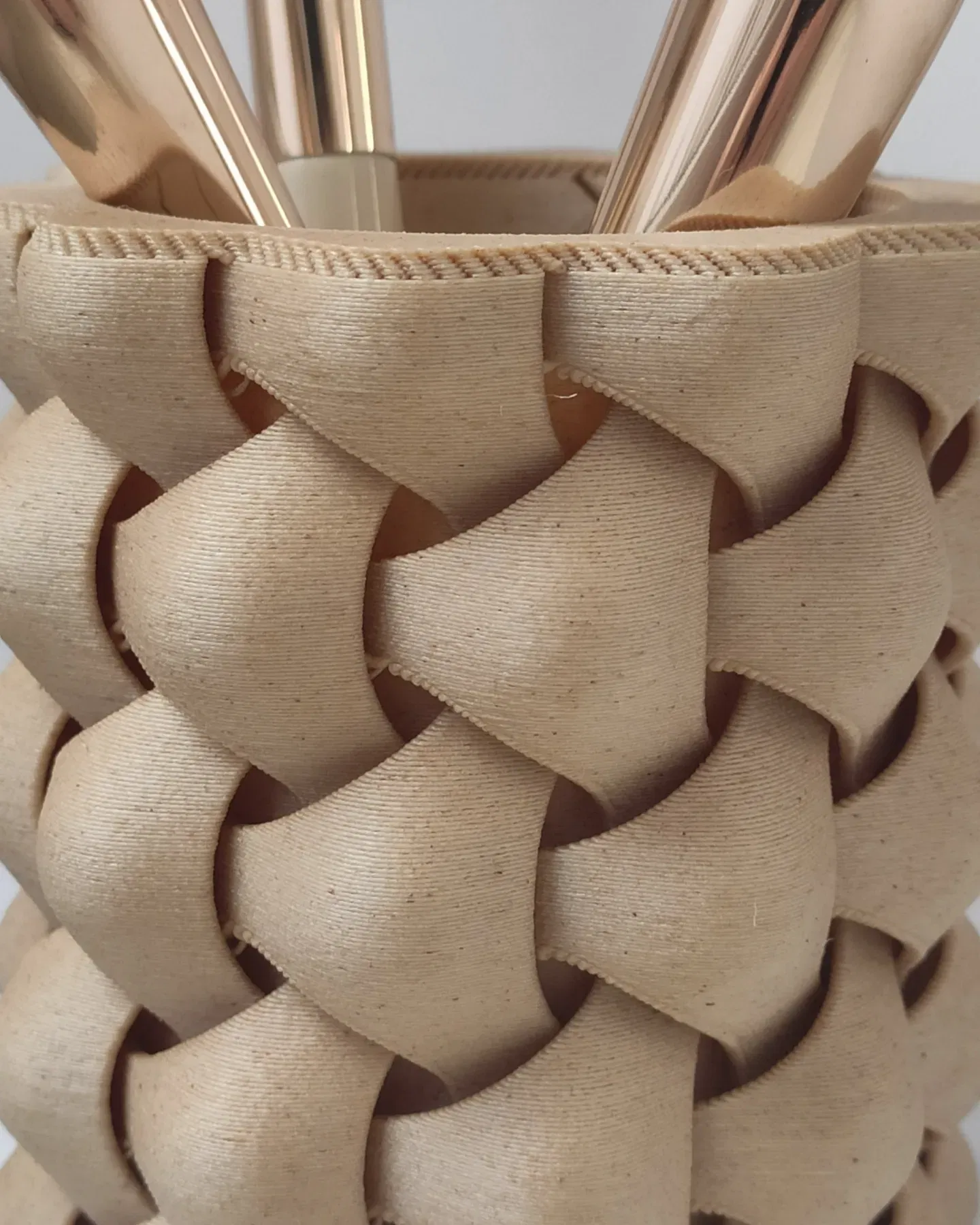 Kệ bút với hoa văn "overengineered" để in bằng chế độ lọ hoa (vase mode). Thích hợp để bàn làm việc, đựng bút, cọ trang điểm.