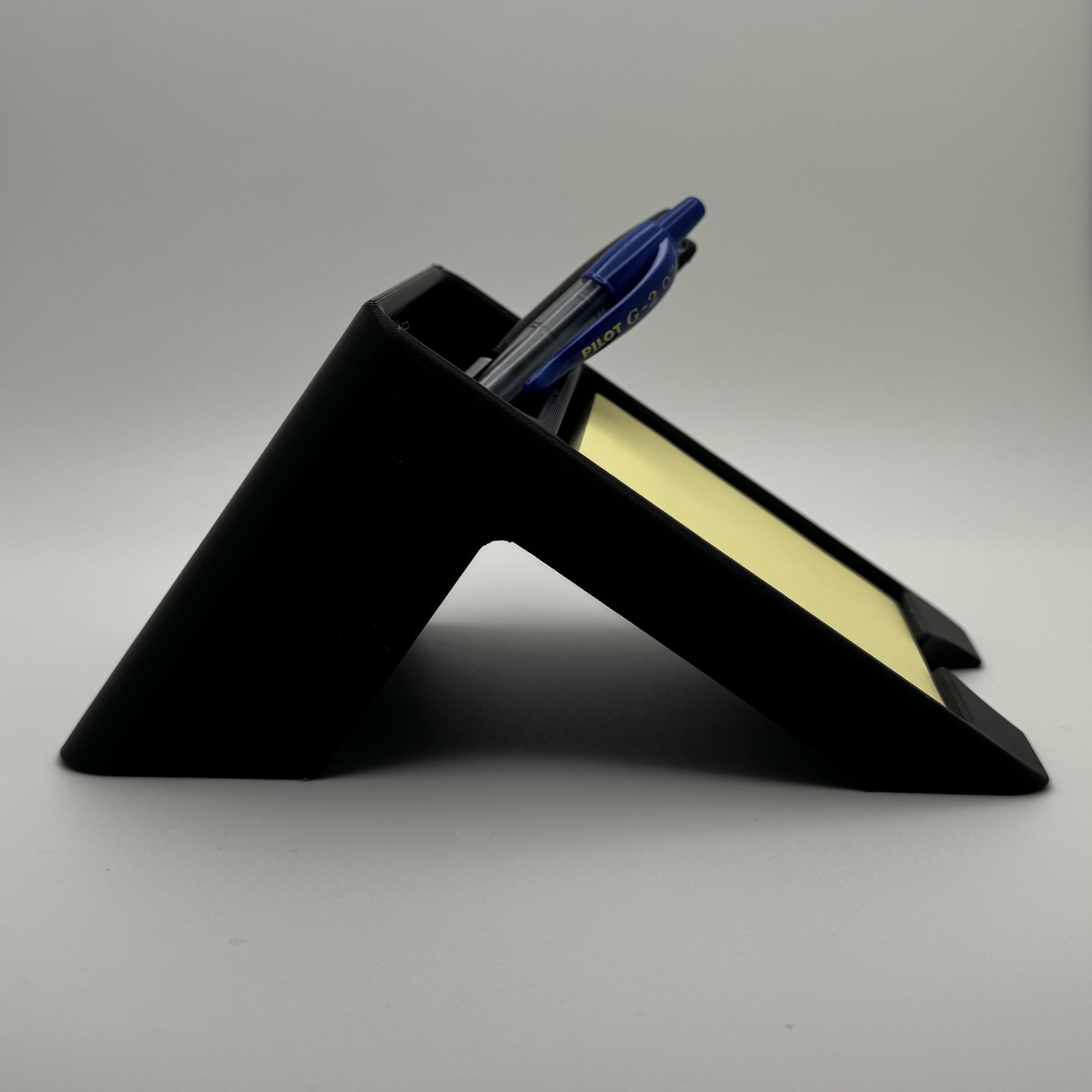 Chân Cắm Bút & Giấy Nhớ Nghiêng Giữ cho bàn làm việc của bạn gọn gàng và phong cách với Chân Cắm Bút và Giấy Nhớ Nghiêng được in 3D này. Với thiết kế tối giản, nó kết hợp một hộc cắm bút nghiêng và một chỗ để giấy nhớ, hoàn hảo cho bất kỳ không gian làm việc nào. Nhỏ gọn, bền bỉ và tiện dụng – một bổ sung tinh tế cho bàn làm việc văn phòng hoặc tại nhà của bạn!