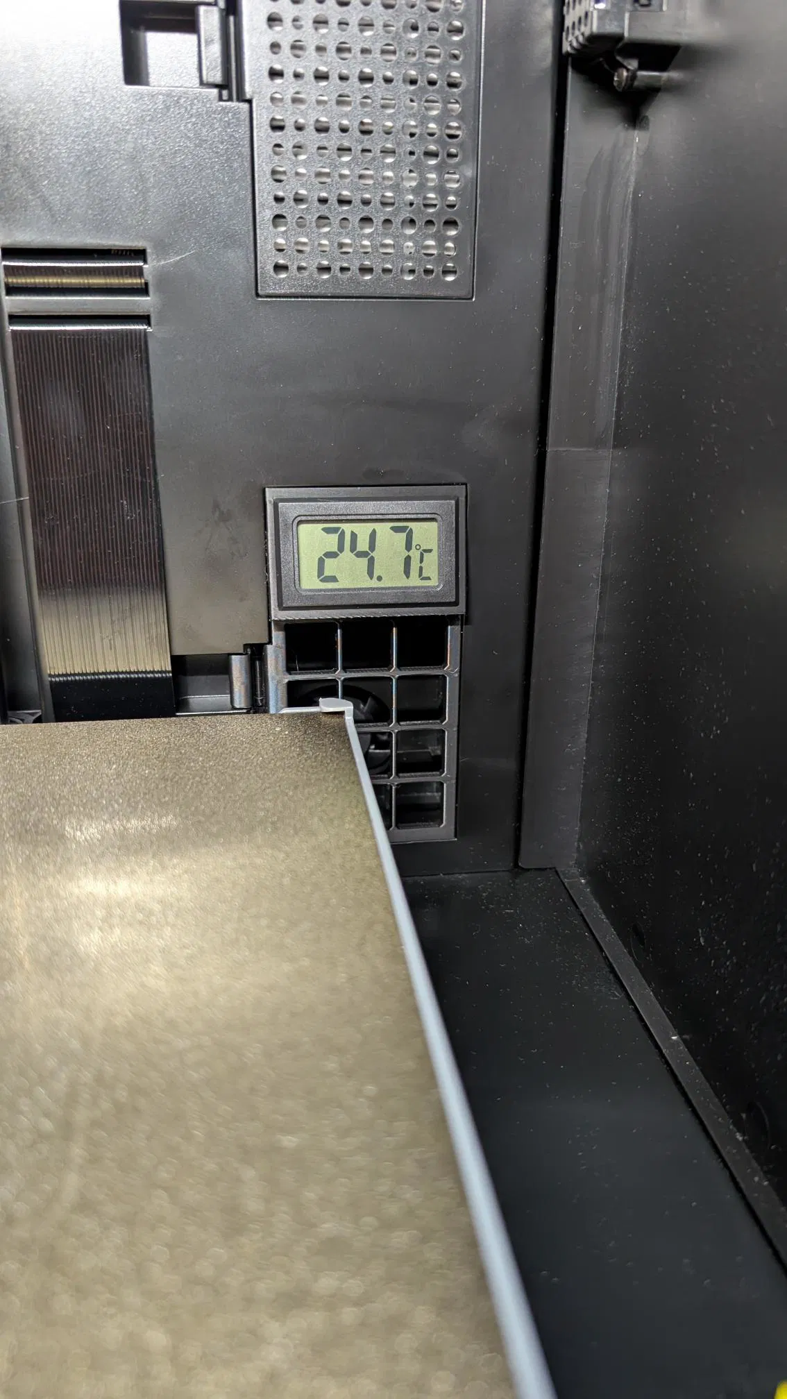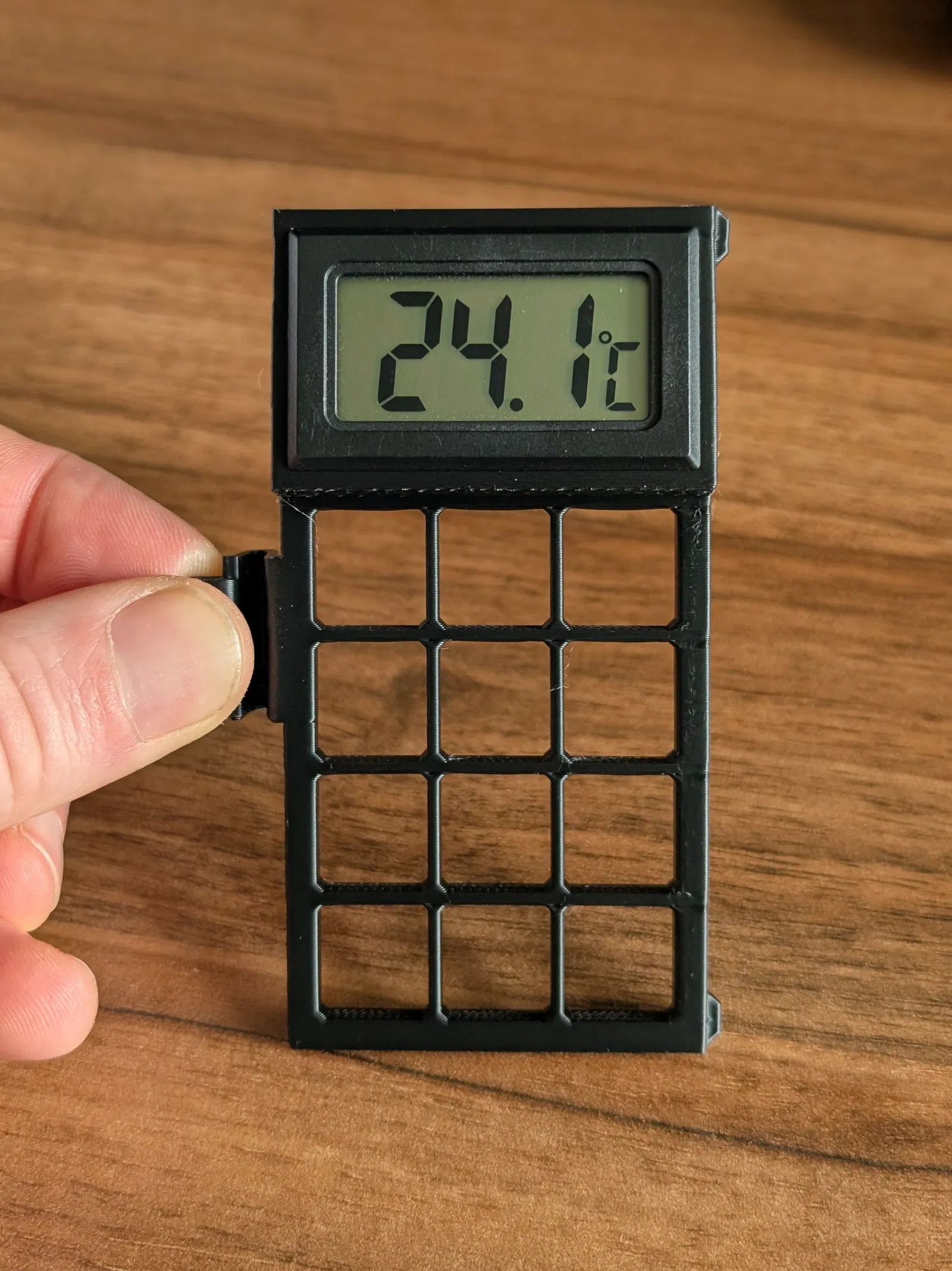 Mình đã thiết kế giải pháp ống xả cho Adventurer 5m Pro (Ống xả có thể tháo rời cho FlashForge Adventurer 5m Pro bởi Simon | Tải mẫu STL miễn phí | Printables.com), nên muốn loại bỏ bộ lọc và tấm che ống xả. Mình cũng muốn theo dõi nhiệt độ trong máy in. Mình thấy có mẫu của WingWong với cảm biến nhiệt độ và độ ẩm tương tự nên quyết định kết hợp cả hai ý tưởng. Mình vẫn giữ quạt hút của máy in trong thời gian này, nên muốn có gì đó bảo vệ nó, phòng trường hợp có sợi nhựa bị văng vào. Mô hình này in đứng, nên độ bền lớp in sẽ hỗ trợ cho hoạt động của kẹp. Mình đã in bằng Elegoo matte PLA với chiều cao lớp 0.2mm, trình tạo thành Arachne, 3 lớp thành, 15% lớp nhồi gyroid và hỗ trợ cây tự động. Hỗ trợ cây chỉ trên mặt bàn in và không hỗ trợ cầu nối. Mình cũng đã làm mỏng các hỗ trợ cây một chút với nhiều cài đặt khác nhau. Nhiệt kế mua trên Ebay với giá <£2. Có cả phiên bản chỉ nhiệt độ và cả nhiệt độ/độ ẩm. Cho những ai hỏi, đây là thiết bị mình đã mua: Nhiệt kế mini kỹ thuật số LCD hiển thị nhiệt độ/độ ẩm đen/trắng | eBay Giờ mình cũng có tấm che tương ứng mà không cần chỗ gắn cảm biến: tấm che tương ứng. Điểm cuối cùng cần lưu ý, nếu bạn muốn dùng cái này với bộ lọc, nó sẽ không khớp trừ khi bạn cắt bỏ một phần nhỏ của bộ lọc nơi cảm biến cấn vào.