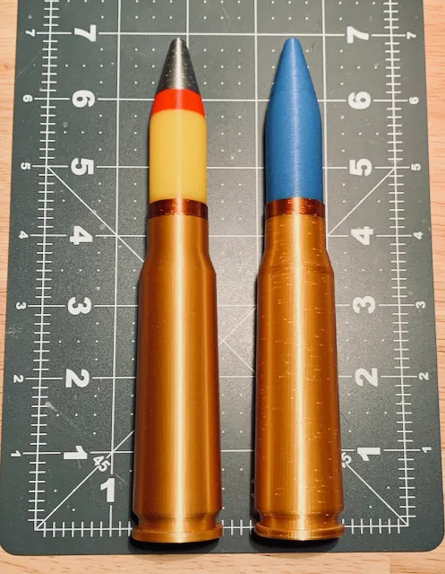 Các mô hình đầu đạn bao gồm 3 hoặc 4 lần thay đổi màu sắc tùy thuộc vào loại đầu đạn bạn đang mô hình. Tôi cũng đã bao gồm một mô hình đầu đạn phù hợp với vỏ đồng thau 20mm rỗng – rất hay nếu bạn đang làm một món đồ trưng bày kỷ niệm.
