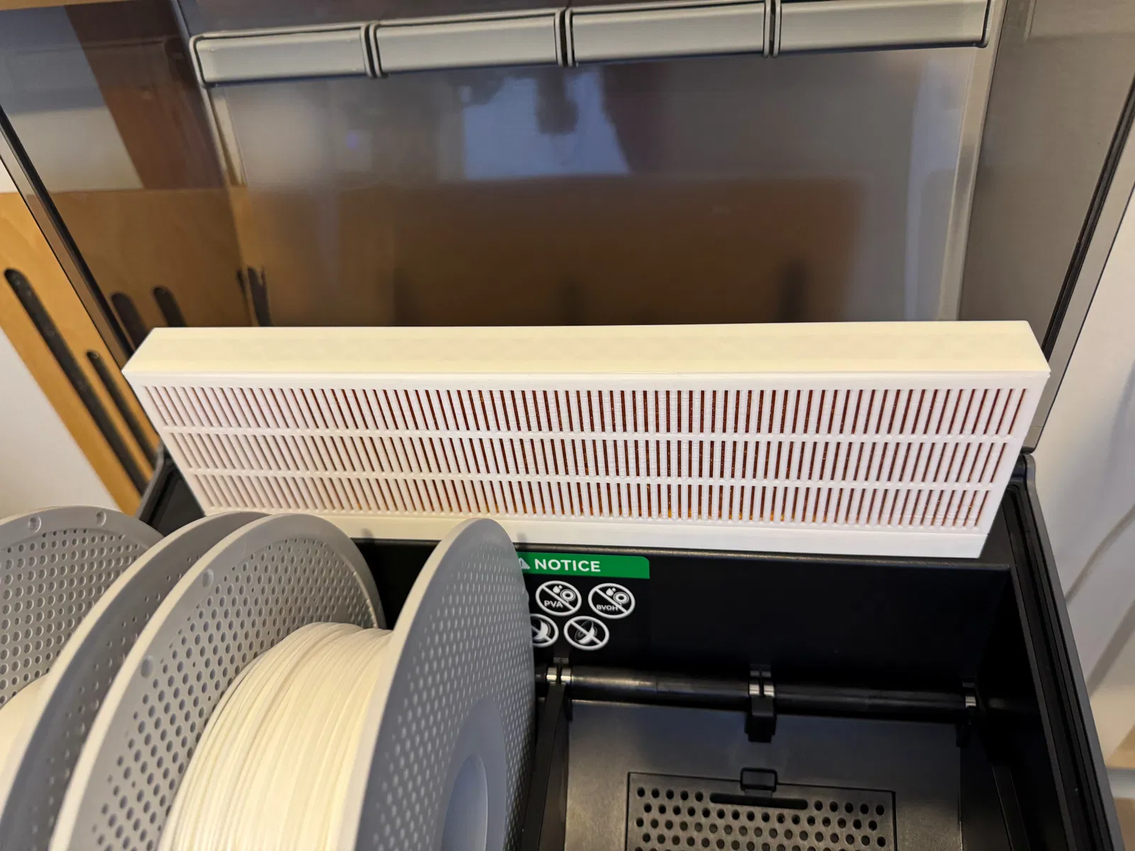 Đây là cái đế đựng Chất hút ẩm cho cái CFS của bạn. Tôi tự làm một cái gắn với vài miếng Băng dính điện, thấy nó dính chắc luôn nè :) Tôi có kèm file .3mf cho K2 Plus, và cả file .step nếu bạn muốn cắt bằng phần mềm khác.