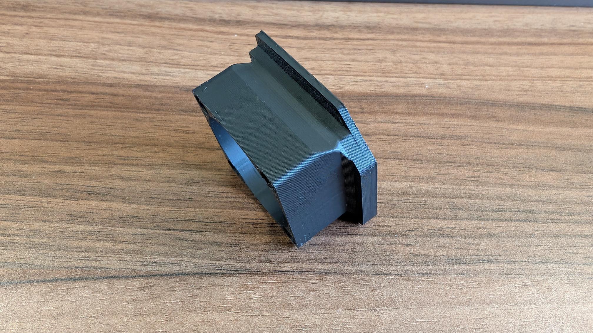 - Ống dẫn bên trong để ngăn máy in xả khí vào khoang bo mạch chủ. Cái này có lỗ cho 4 nam châm đường kính 6mm, dày 3mm, nhưng thực ra chỉ cần một cái để giữ nó đúng vị trí. Các lỗ sâu hơn nam châm, nên đẩy chúng xuống đáy, để đầu vít của quạt cũng vừa vào lỗ luôn. In không cần chống đỡ.