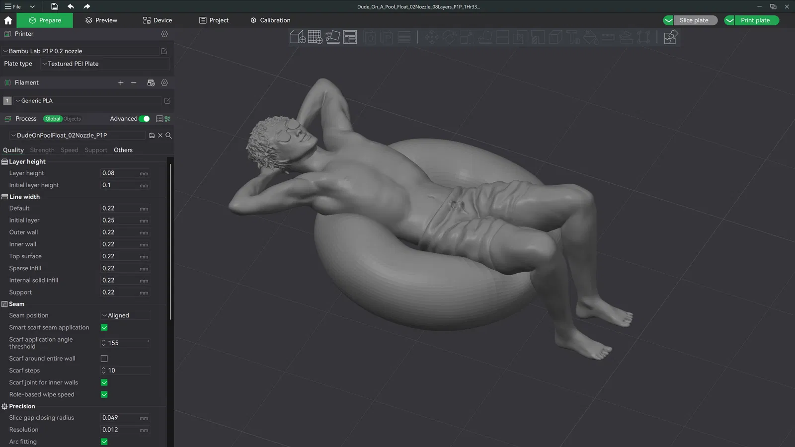Đây là cài đặt tôi đã sử dụng cho đầu phun 0.2 trên máy Bambu Lab P1P của tôi: