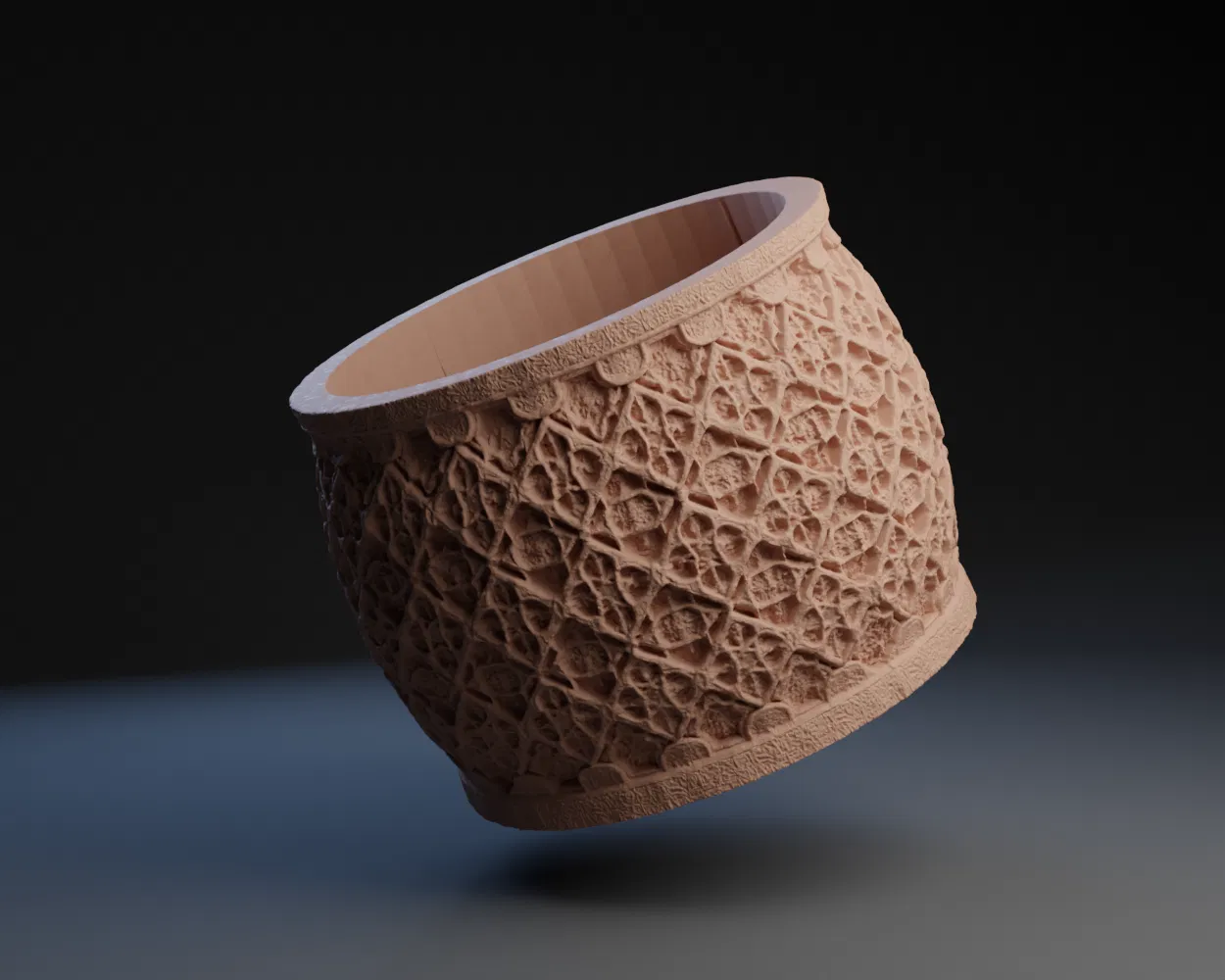 Chậu Alhambra là một mô hình 3D độc đáo, lấy cảm hứng từ kiến trúc Moorish của Tây Ban Nha. Hoàn hảo để trang trí hoặc trồng cây, mang vẻ đẹp cổ điển vào không gian của bạn.