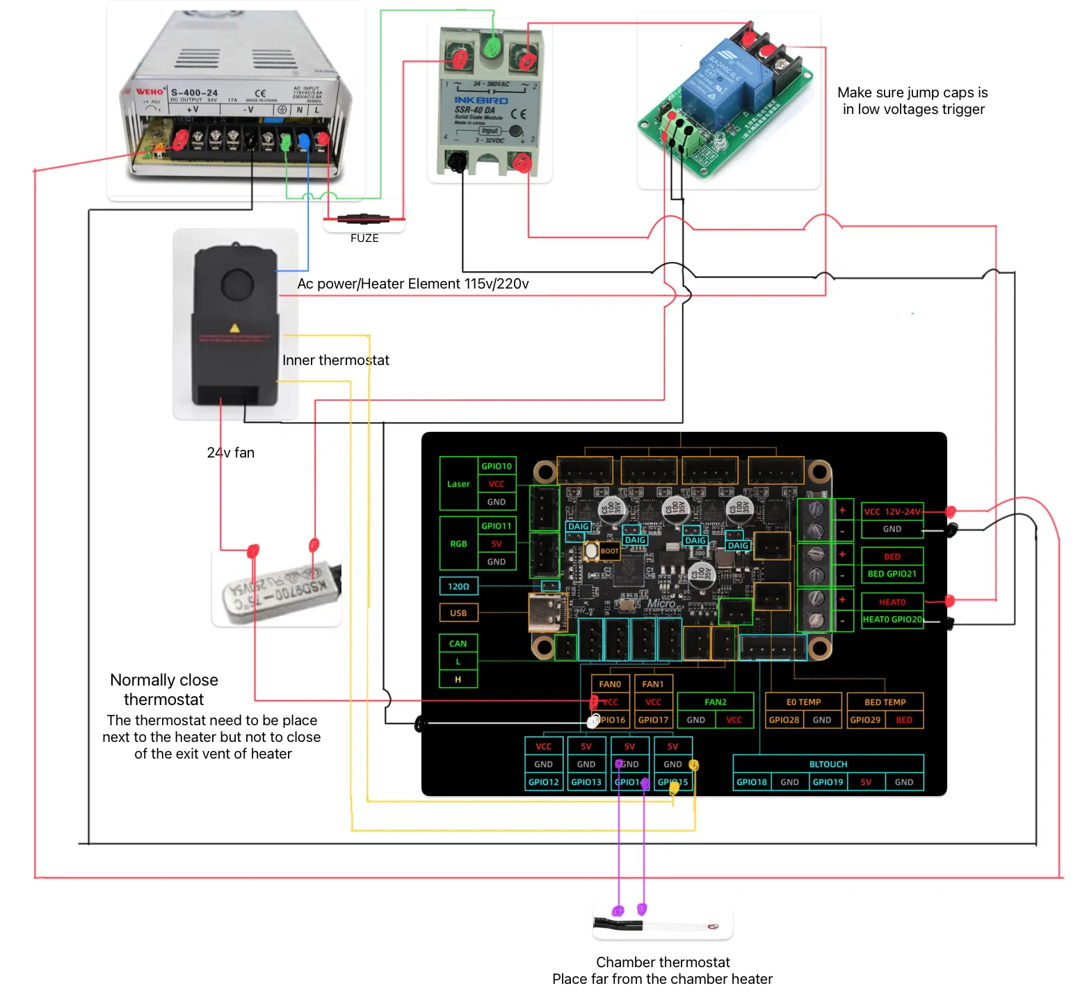 Mục tiêu chính của tôi là làm cho bộ sưởi ấm buồng an toàn nhất có thể. Thiết lập bao gồm nhiều lớp an toàn cho bộ phận làm nóng 115v/220v: