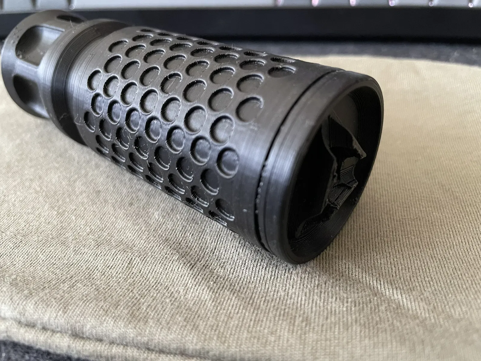 Ống giảm thanh giả 3D cho súng airsoft, ren 14mm CCW. Có thể tháo rời đầu để thêm mút hoặc bộ phận tracer. Có lỗ đi dây cho pin ngoài hoặc bộ điều khiển vi mô. Chỉ dùng cho airsoft.