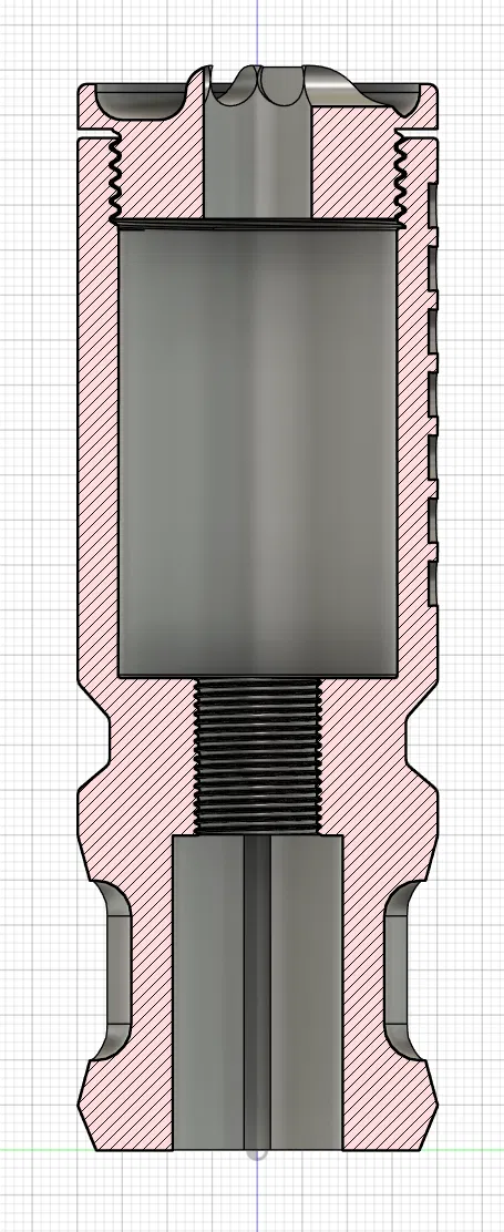 Phần đầu của ống giảm thanh có thể vặn ra để tiếp cận bên trong, nơi bạn có thể thêm mút hoặc các bộ phận cho bộ phận tracer. Ngoài ra còn có các lỗ đi dây để sử dụng pin ngoài hoặc bộ điều khiển vi mô.