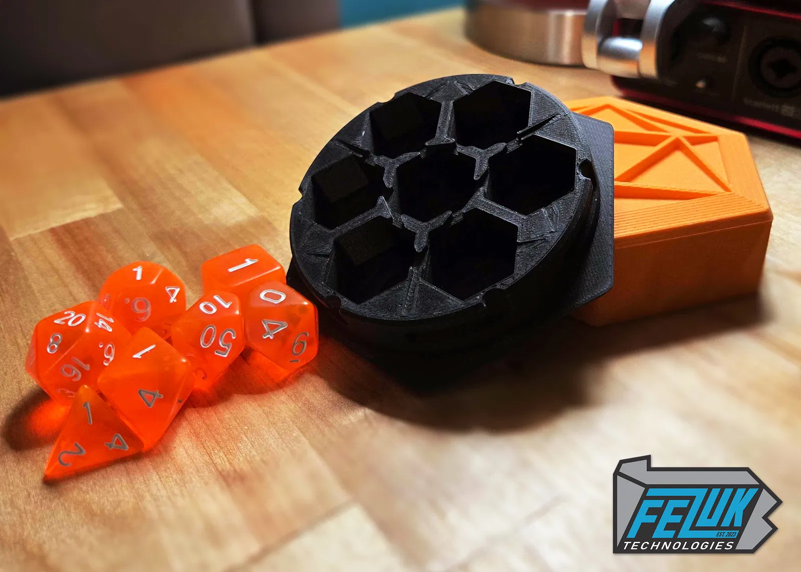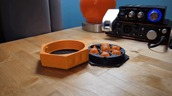 Thiết kế hộp đựng xúc xắc và khay tung xúc xắc có khả năng xoay khớp, tích hợp khay tung xúc xắc. Không cần phụ kiện, chỉ cần in và chơi! Có phiên bản lớn hơn cho xúc xắc lớn hơn và khay tung lớn hơn.