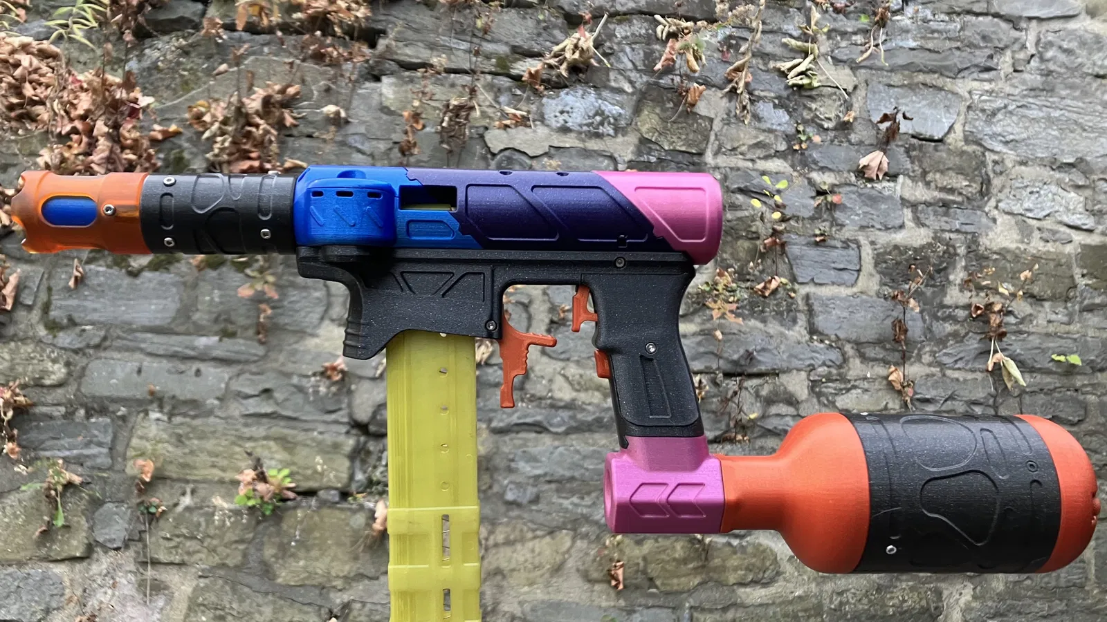 Xin giới thiệu Amoeba, một khẩu blaster đạn xốp không chổi than đã được nghiên cứu và phát triển hơn một năm rưỡi. Amoeba là sản phẩm do tôi tự nghĩ ra, với mọi khía cạnh của khẩu blaster được thiết kế dựa trên cách tôi chơi cá nhân, nhưng đã dành nhiều thời gian để biến nó thành một sản phẩm đơn giản để người khác có thể chế tạo và tận hưởng. Hầu hết các thành phần đều có các biến thể, cho dù đó là điều chỉnh cho dung sai máy in hay phiên bản thay thế cho các sở thích khác nhau của người dùng. Các thành phần và tính năng chính như sau: