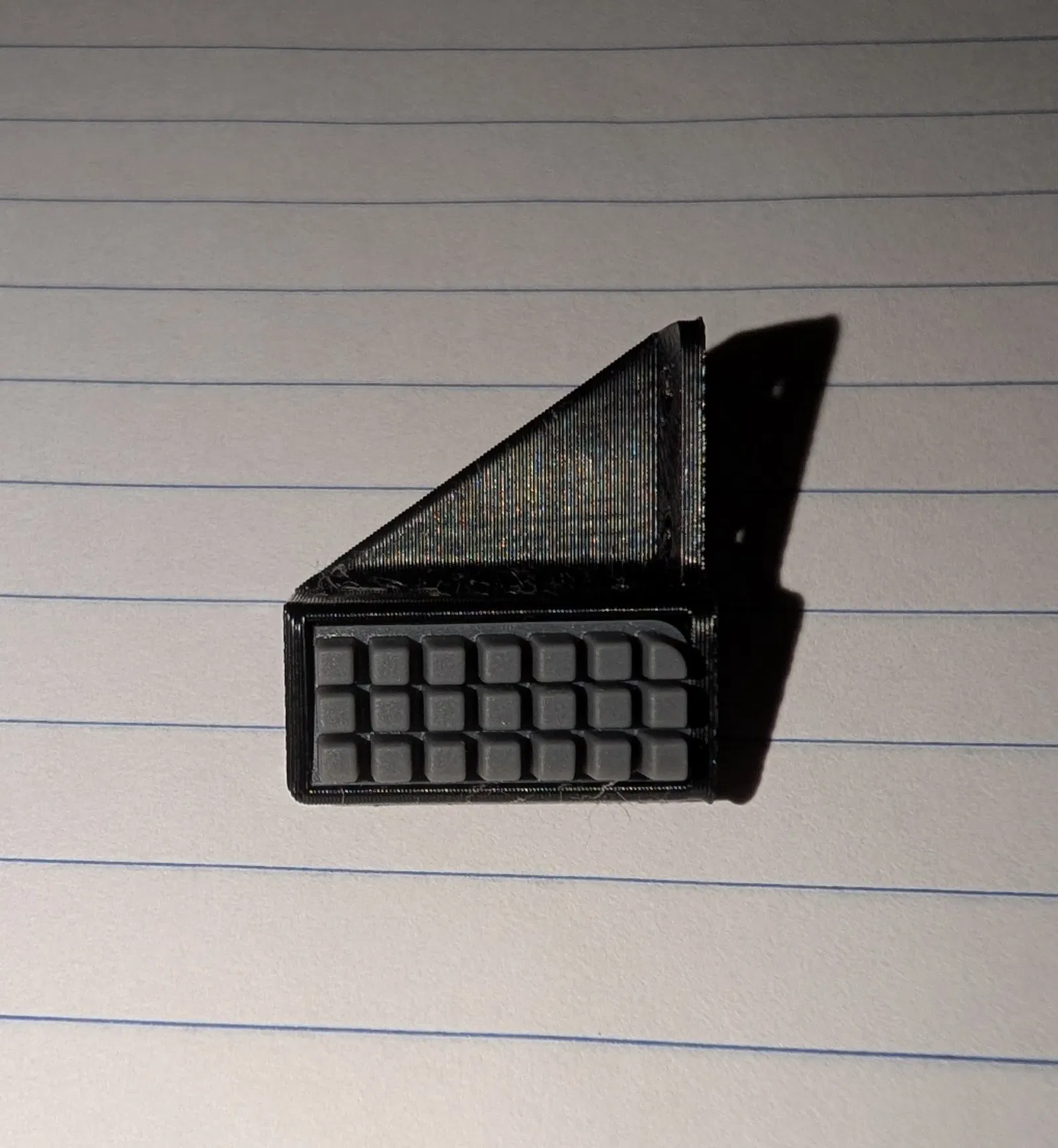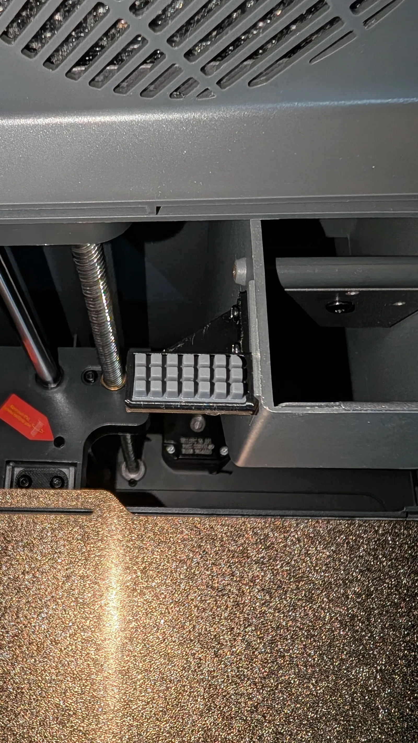 Mình khuyên bạn nên in ít nhất bằng PETG vì nhiệt độ trong buồng in. Không cần hỗ trợ, in thẳng đứng trên mặt ốc vít. Không cần chỉnh sửa G-code cho việc gạt nozzle.