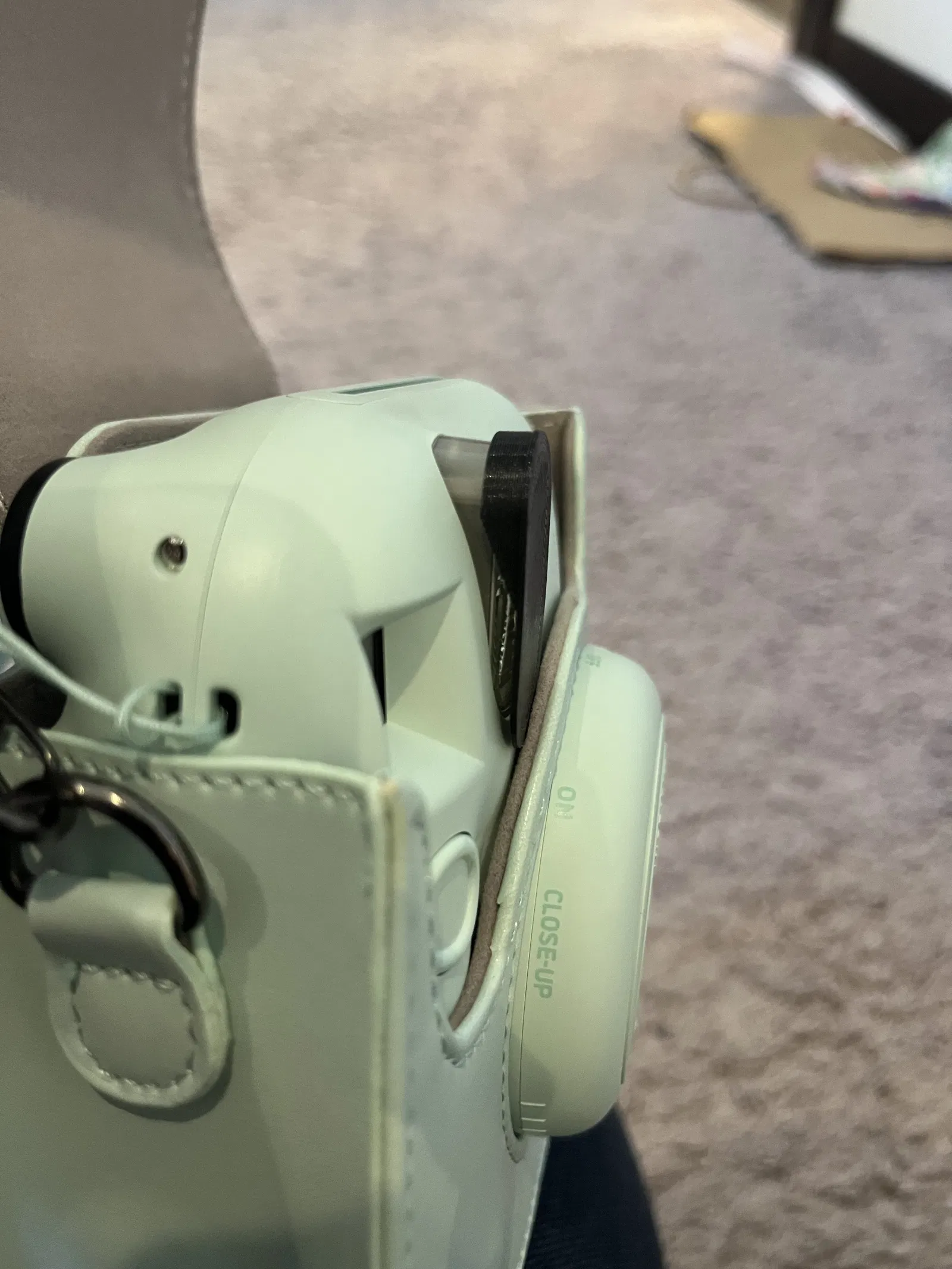 Một cái vỏ/tản sáng đèn flash nhanh gọn cho Instax Mini 12, cái này ôm sát vô máy hơn so với loại cho Instax 11. Cái vỏ này nằm sát đèn flash, và không có cái lẫy để gắn vô chắc chắn đâu nha. Tui thì tui thích dùng miếng keo dán nhỏ dán vô mép trên mặt trong để cố định cái vỏ, hoặc là nhét vô cái hộp máy ảnh để lấy ra khi cần.