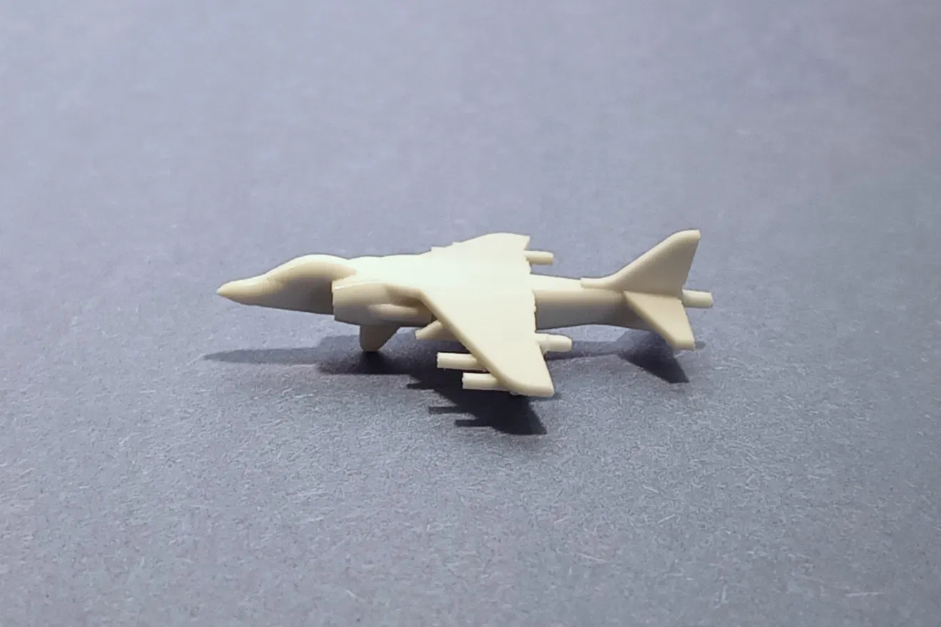 Khám phá mô hình máy bay chiến đấu AV-8B Harrier II tỷ lệ 1/320. Mô hình này được thiết kế để in 3D dễ dàng với các trụ đỡ được tích hợp sẵn, giảm thiểu nhu cầu hỗ trợ và mang lại bản sao chi tiết nhưng đơn giản của máy bay thực tế. Lý tưởng cho người mới bắt đầu và những người đam mê muốn có một bản dựng nhanh chóng và đẹp mắt.