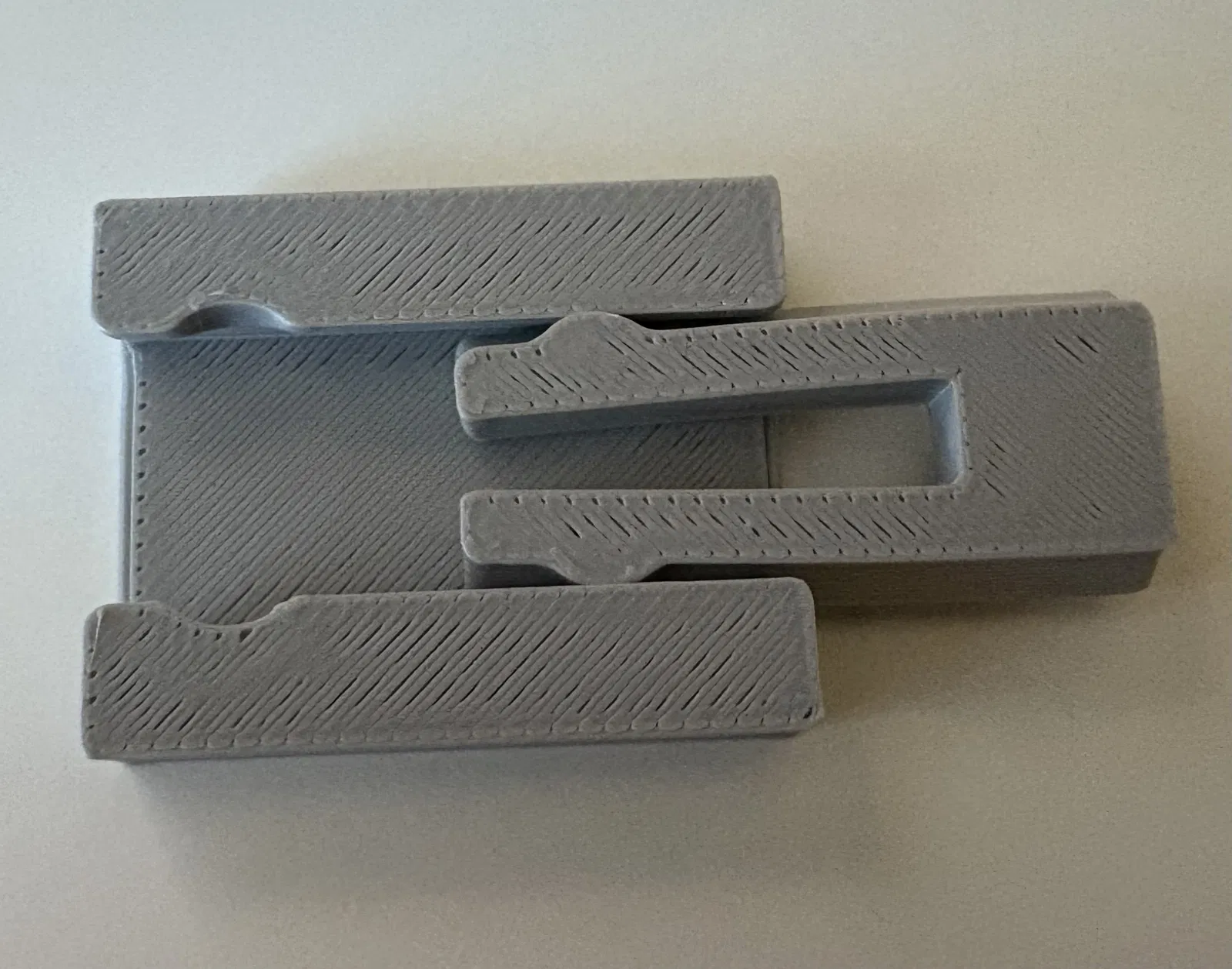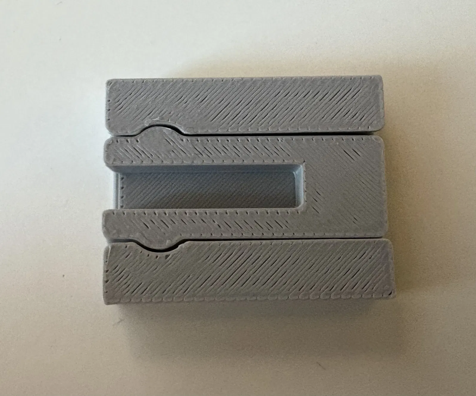 Phần "lẫy gài" của thiết kế phụ thuộc vào khả năng biến dạng rồi trở về hình dạng ban đầu của nhựa PETG. Vì vậy tôi đặc biệt khuyên bạn nên in bằng PETG, hoặc một loại sợi nhựa khác có đặc tính tương tự. Nếu in bằng PLA, tính năng này có thể sẽ không hoạt động, và phần dương của khớp đuôi én có thể bị gãy. Hãy chọn lựa cẩn thận.