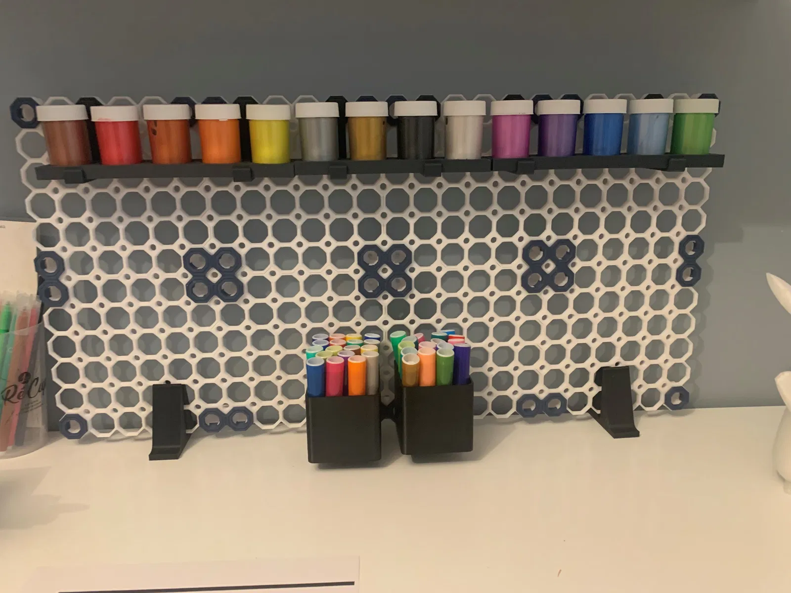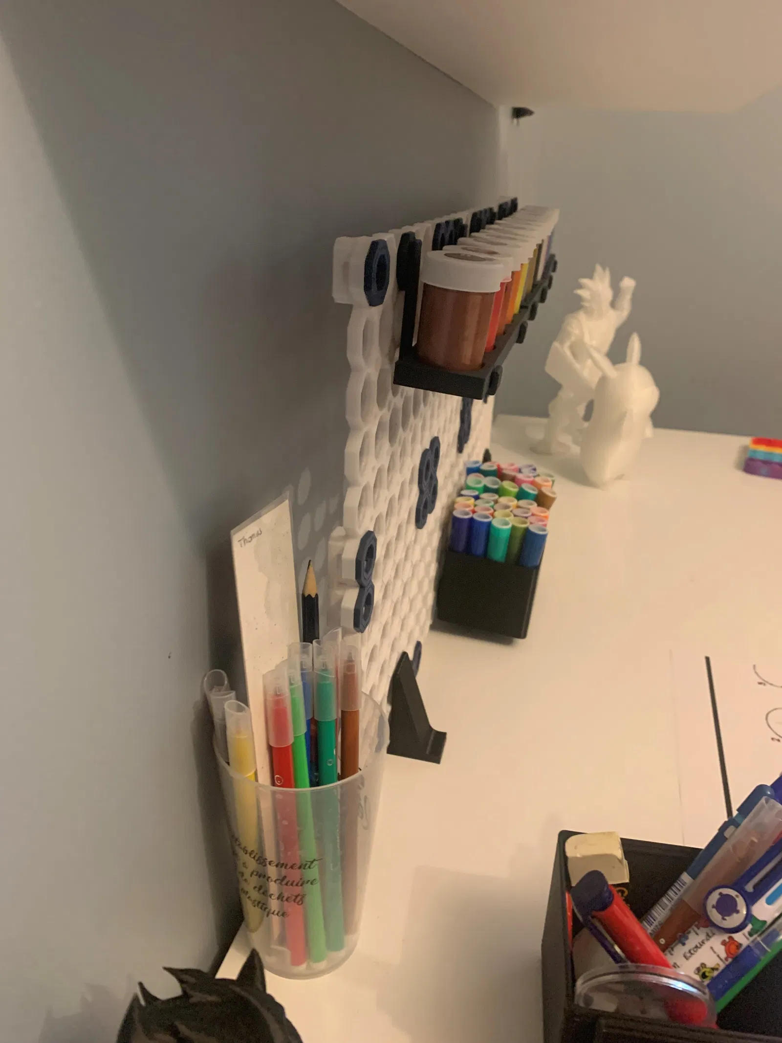 Nên tui làm ra cái phiên bản này cho dễ xài. Không cần lắp ráp gì hết. Mà nó cũng giữ được tương đối nặng mà không bị lung lay, như các bạn thấy trong hình là tui cố tình để đồ sơn của thằng con tui lên trên để nó mất thăng bằng hết mức có thể.