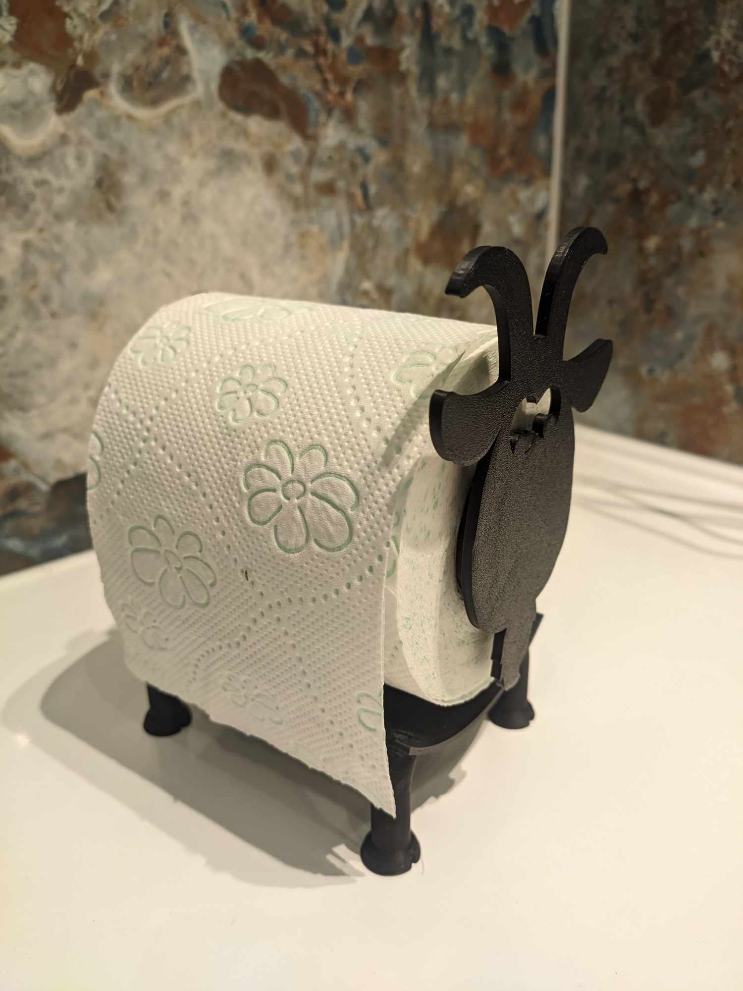 Phiên bản remix của một bản remix, dễ lắp ráp và sử dụng để nhả giấy vệ sinh. Chỉ cần filament đen, không cần support hay brim. Cải tiến với lỗ sau kín đáo, đầu bớt chật và chân dễ đứng vững.