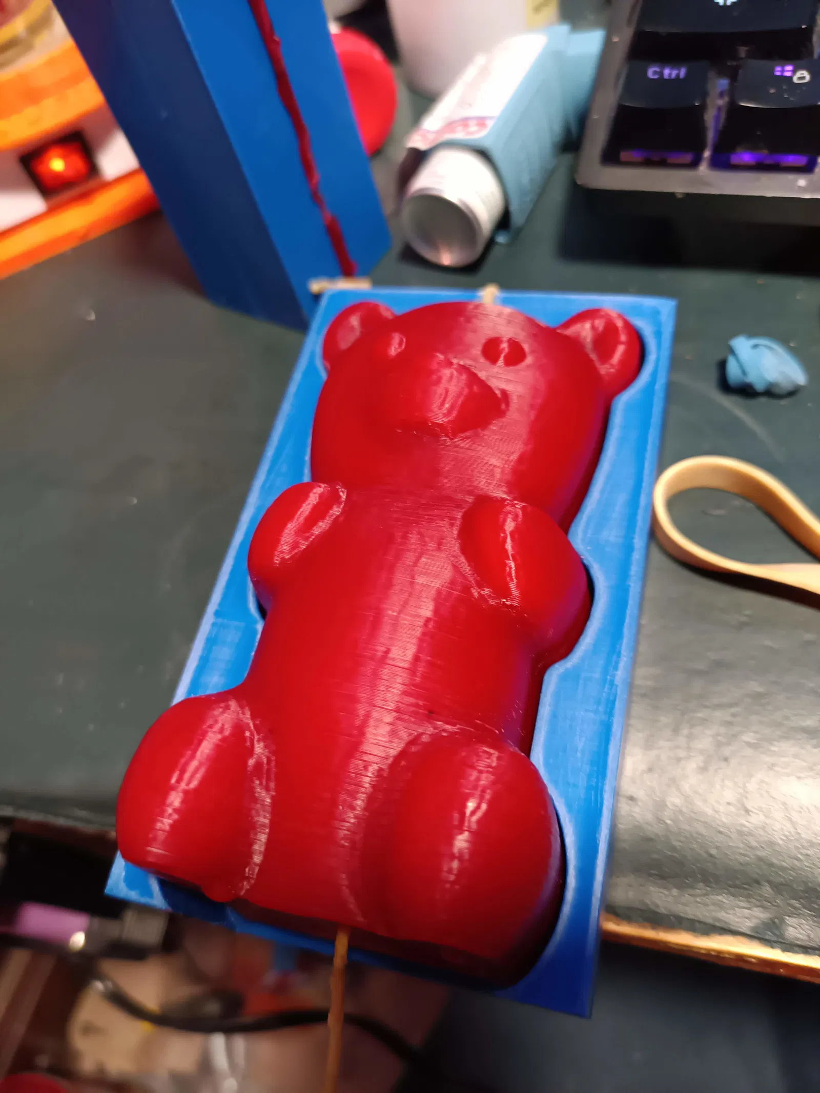 Mấy cái khuôn nến hình Gummy Bear có sẵn trên thị trường thì dở ẹc à, với lại nhỏ xíu hà nên tui tự làm cái này.