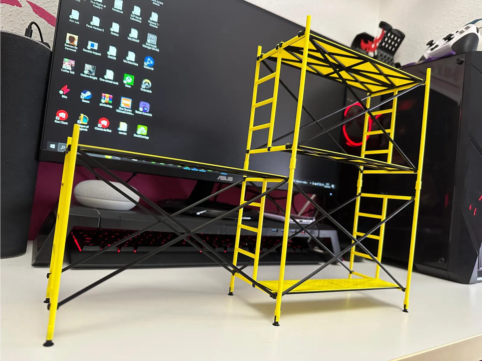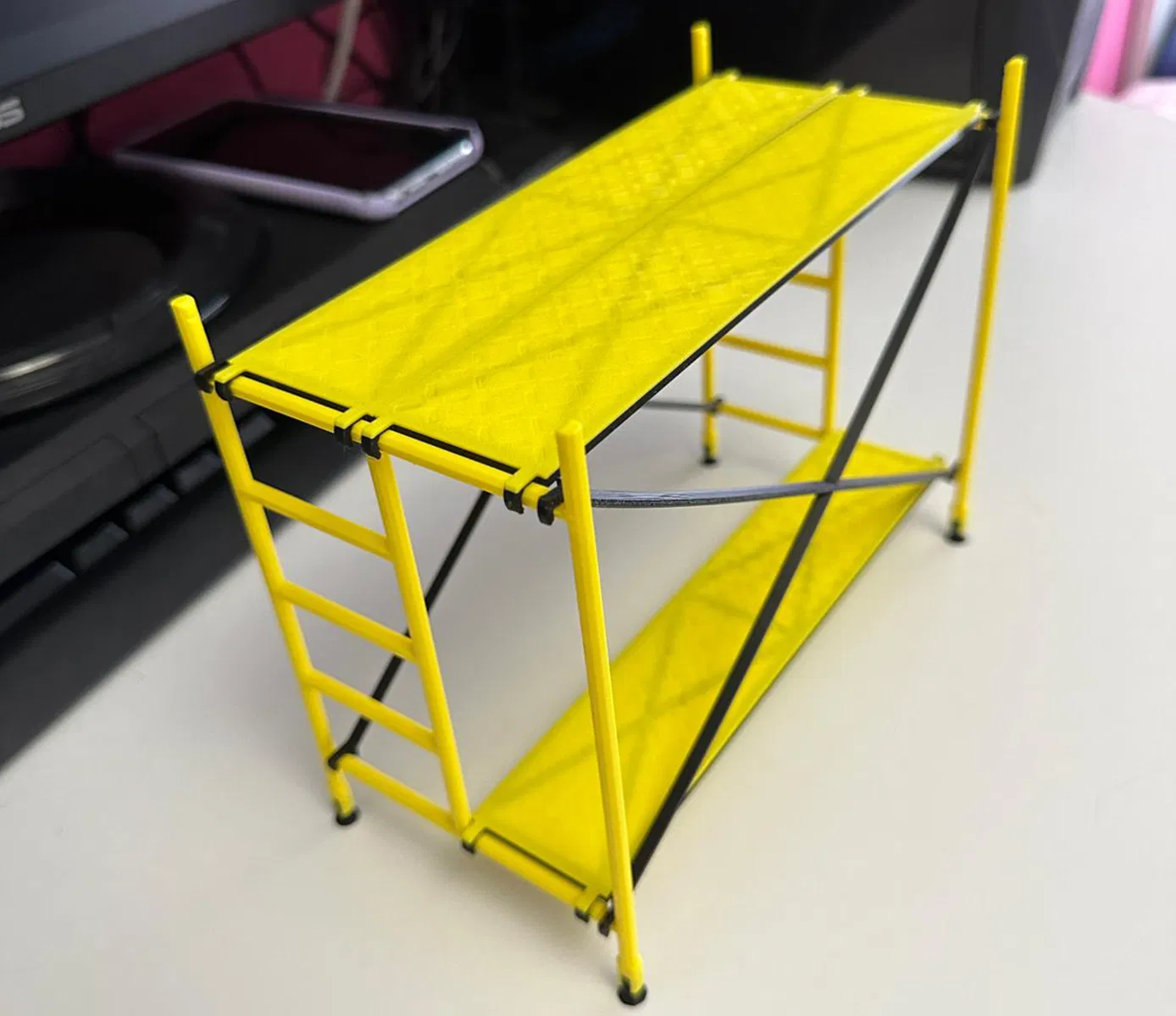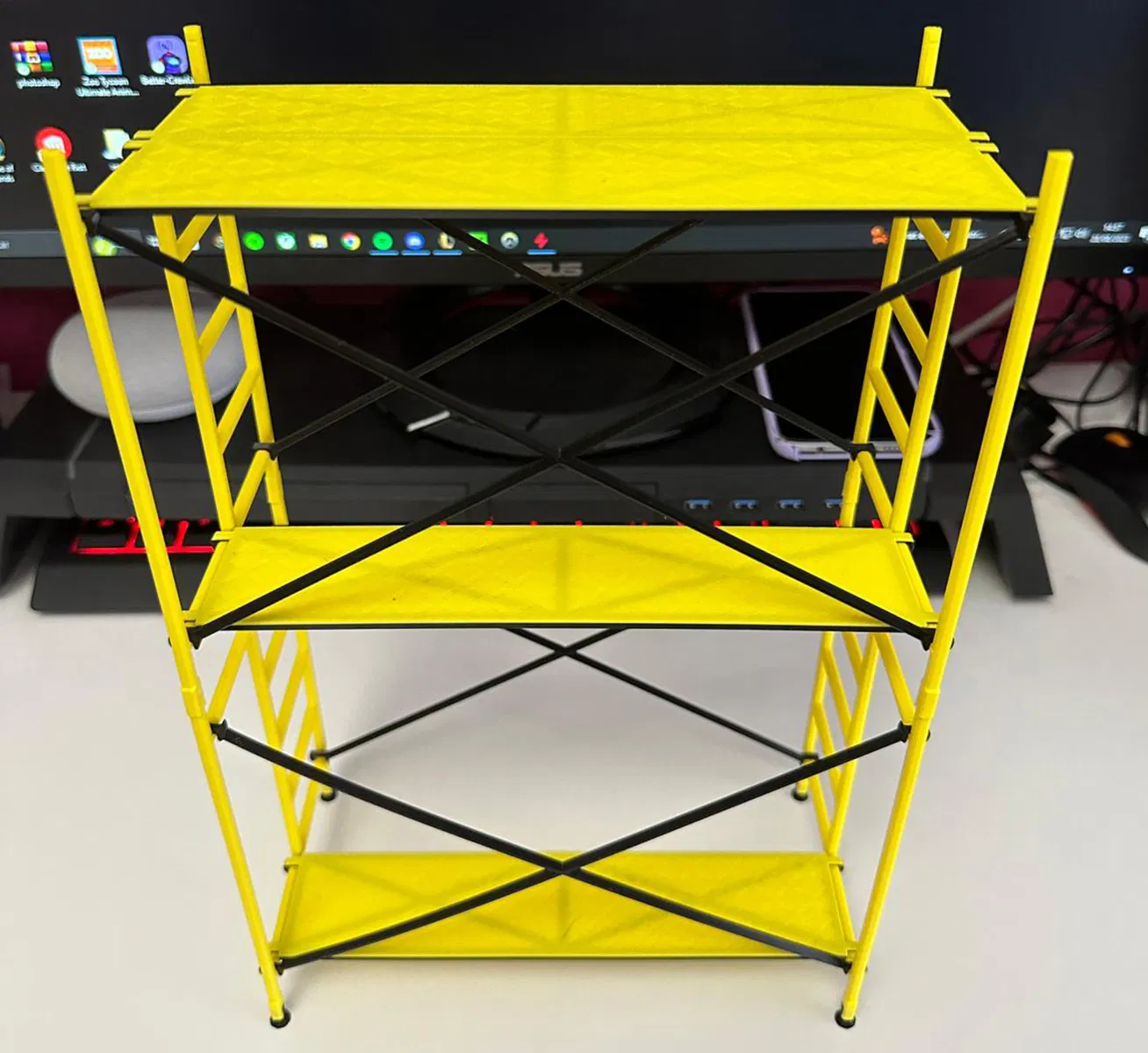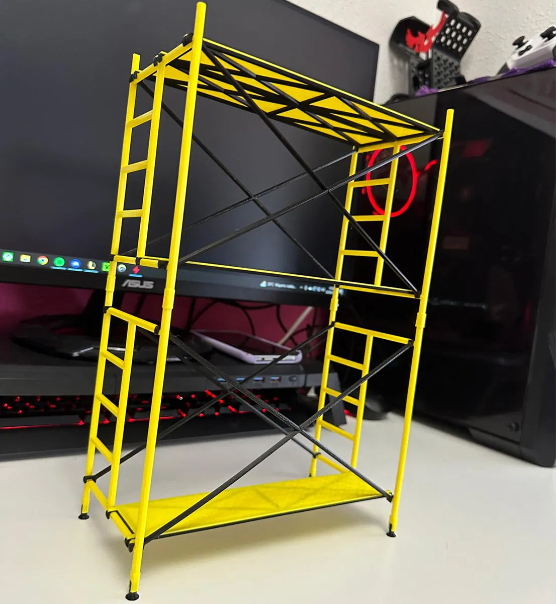 Bạn có thể xếp chồng cái kệ giàn giáo này lên nhau để làm thành một cái kệ đẹp mắt, tha hồ trưng đồ mà không cần lo vụ in support đâu nha. Dễ dàng tùy biến lắm đó!