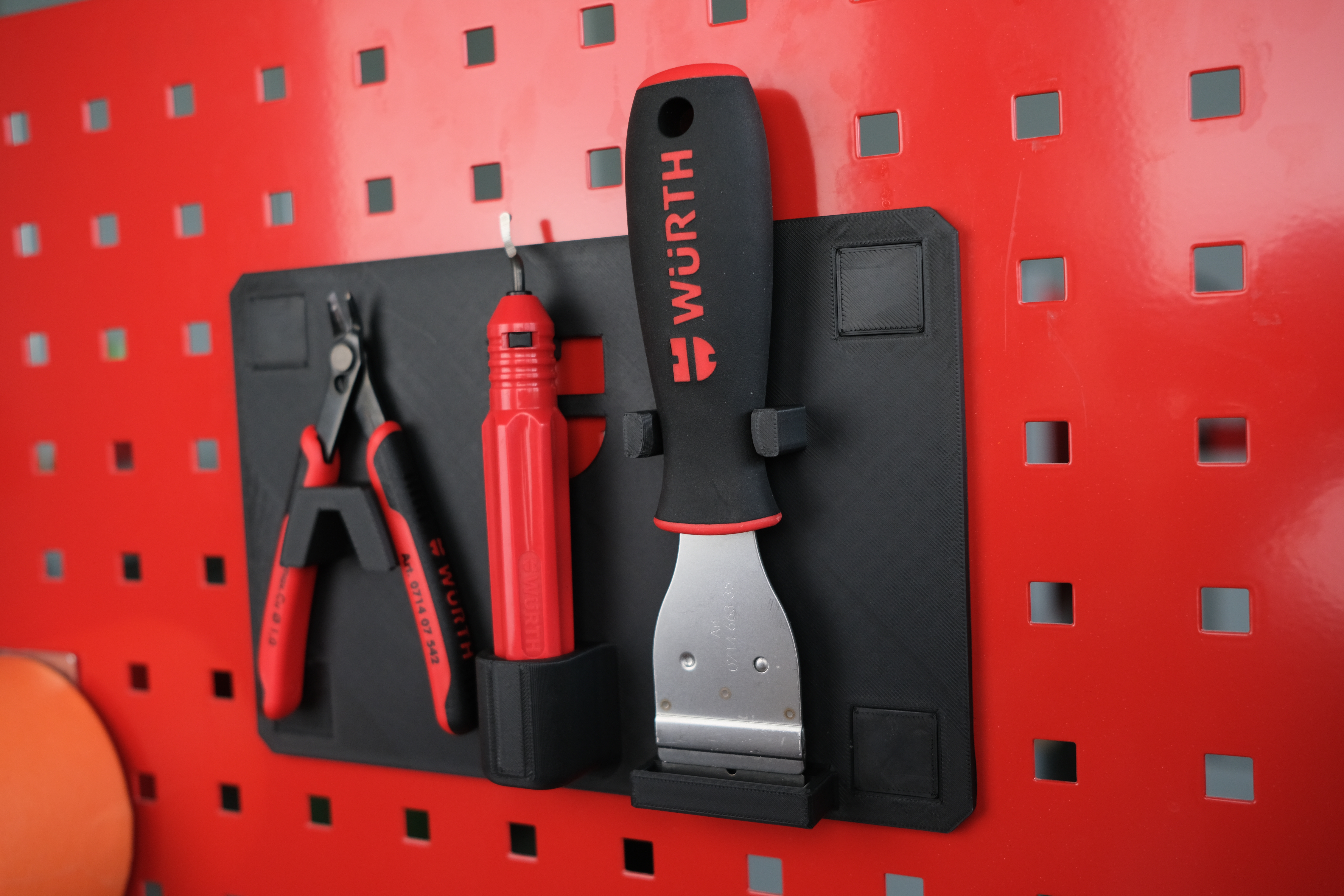 Giữ các dụng cụ in 3D quan trọng nhất của bạn luôn trong tầm tay với Kệ dụng cụ Würth cho bảng đục lỗ Würth. Thiết kế cho dao cạo, kìm cắt và dụng cụ làm sạch nhanh. In bằng PLA với thông số được khuyến nghị để có kết quả tốt nhất.