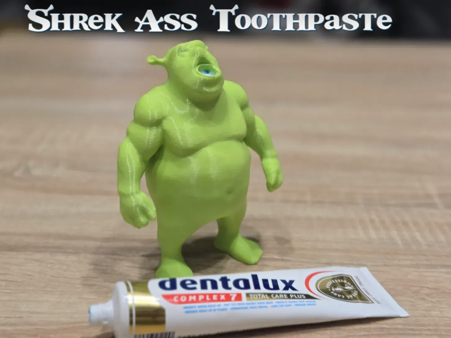 Chào mọi người, tui mới làm cái mô hình mông Shrek nè, mọi người vặn tuýp kem đánh răng vô miệng ổng, bóp kem ra thì cái mông ổng sẽ làm nhiệm vụ. Ren ổng là ren universal 12-13mm, nếu có nhu cầu tui làm ren lớn hơn cũng được nha. Chúc mọi người vui vẻ.
