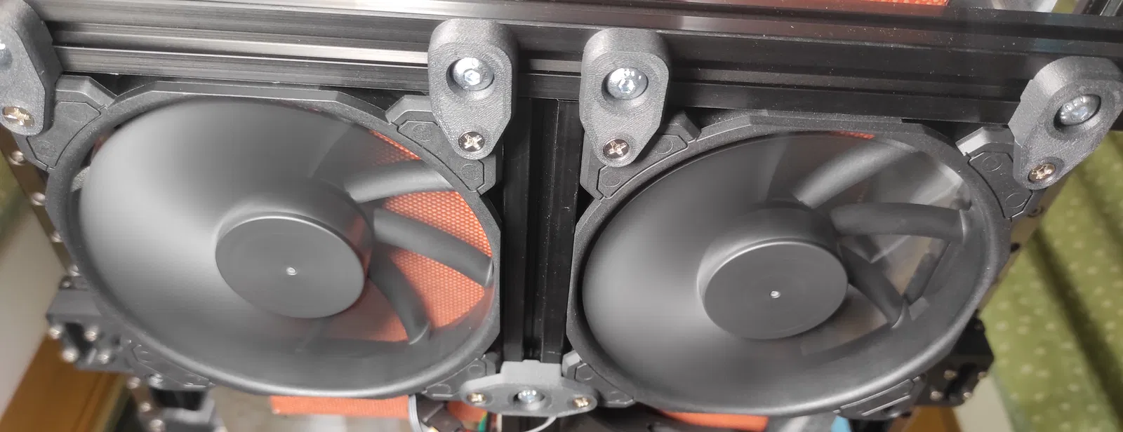 Ngàm quạt đơn giản cho quạt máy tính 120x120x25mm hoặc 140x140x25mm. Giúp tăng nhiệt độ buồng in và giảm cong vênh giường in. Lưu ý không dùng quạt dày quá 25mm và không chạy ở 100% tốc độ.