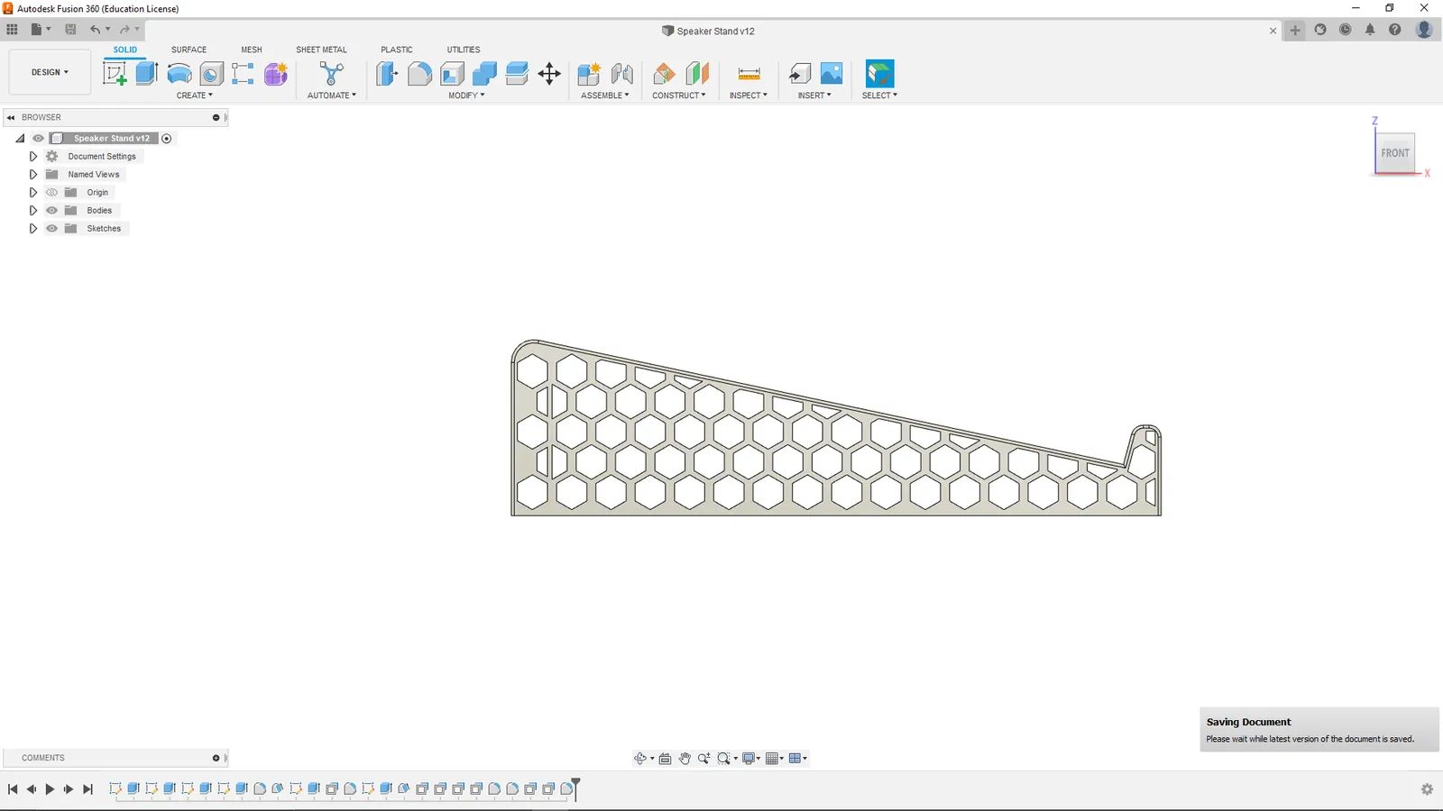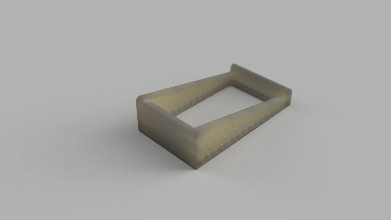 Chân loa nghiêng 15 độ, kích thước 215x120x58mm. Sản phẩm giúp giảm rung động nhờ cấu trúc lục giác và nâng loa cao hơn khoảng 17mm. Phù hợp in bằng ABS với cài đặt chi tiết.