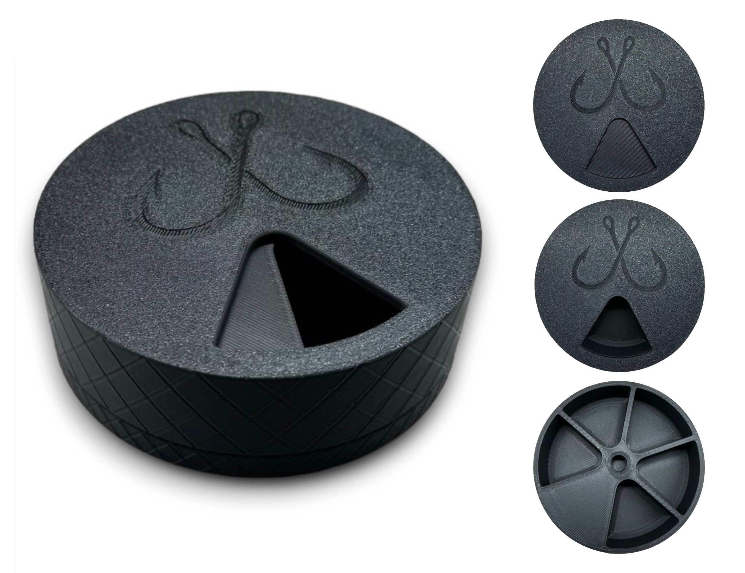 Hộp đựng đồ câu cá hình trụ này có năm ngăn xoay, lý tưởng để sắp xếp lưỡi câu và các vật dụng nhỏ. Được đề xuất in bằng PETG. Hướng dẫn lắp ráp chi tiết cho cả phiên bản mới và cũ, cùng với nhật ký thay đổi cập nhật về việc cải tiến hệ thống và dung sai.