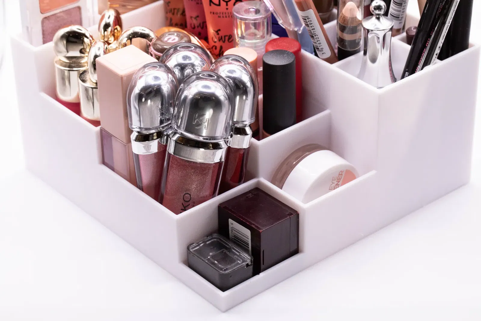 Kệ đựng đồ trang điểm tùy chỉnh, kích thước 172mm x 172mm, hoàn hảo cho kệ phòng tắm nhỏ. Giúp bạn cất giữ và trưng bày mỹ phẩm hiệu quả, dễ dàng lấy dùng. Có sẵn trên Makerworld.