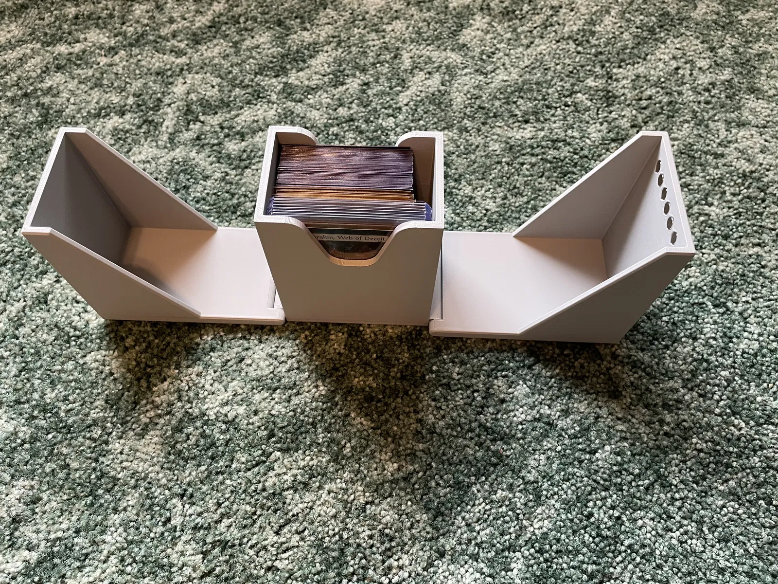 Đây là một hộp đựng bài an toàn, có thể gấp gọn cho MTG, FaB, Exodus, hoặc bất kỳ trò chơi thẻ bài nào có kích thước tiêu chuẩn.
