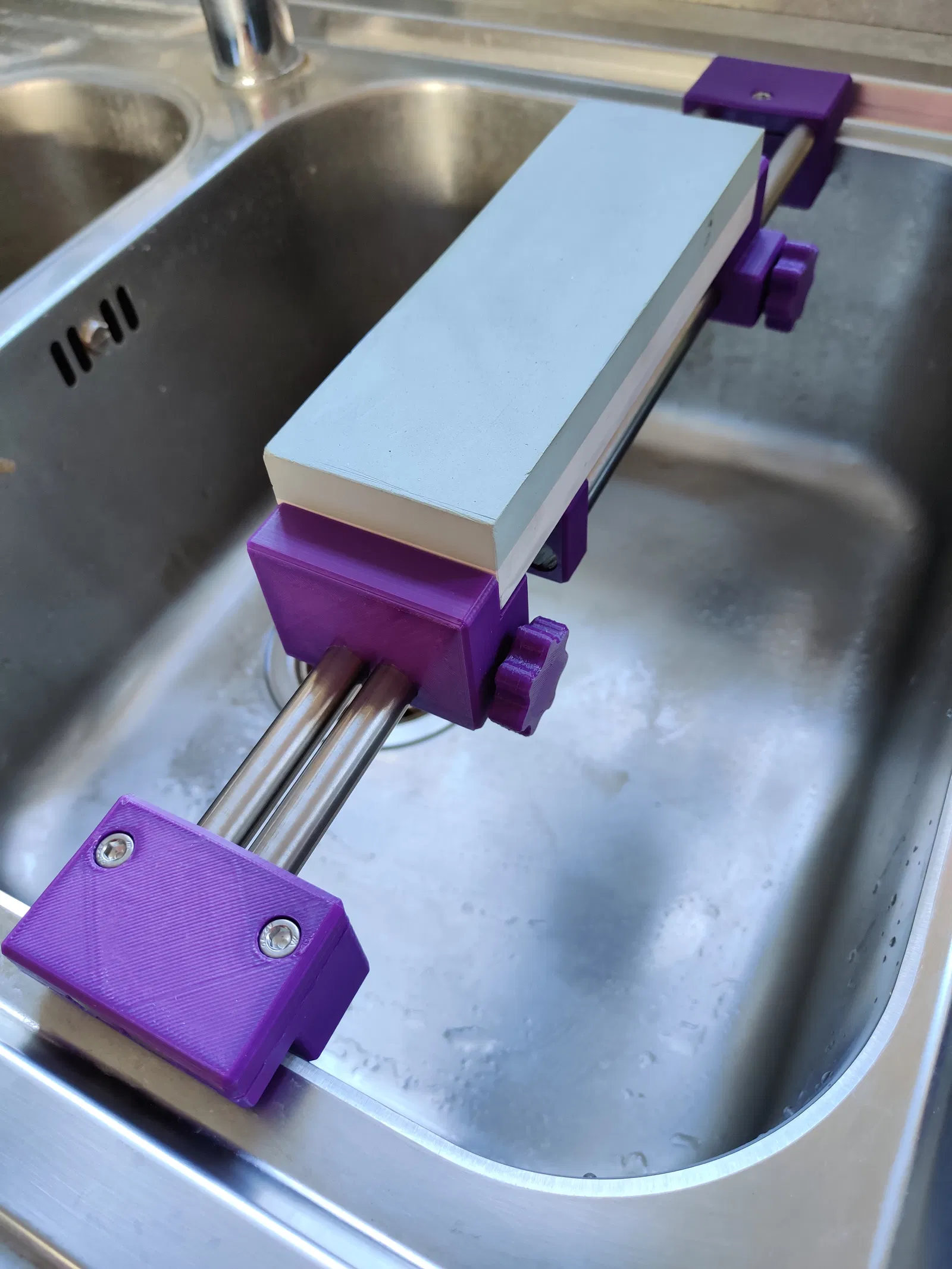 Một cây cầu giữ đá mài (whetstone sink bridge) chủ yếu in 3D, dùng để giữ chắc hầu hết các kích cỡ đá mài trên bồn rửa của bạn, giúp bạn mài bén an toàn và dễ dàng. Các file STL được cung cấp có chiều rộng 68mm và giữ được đá dày hơn 7mm.
