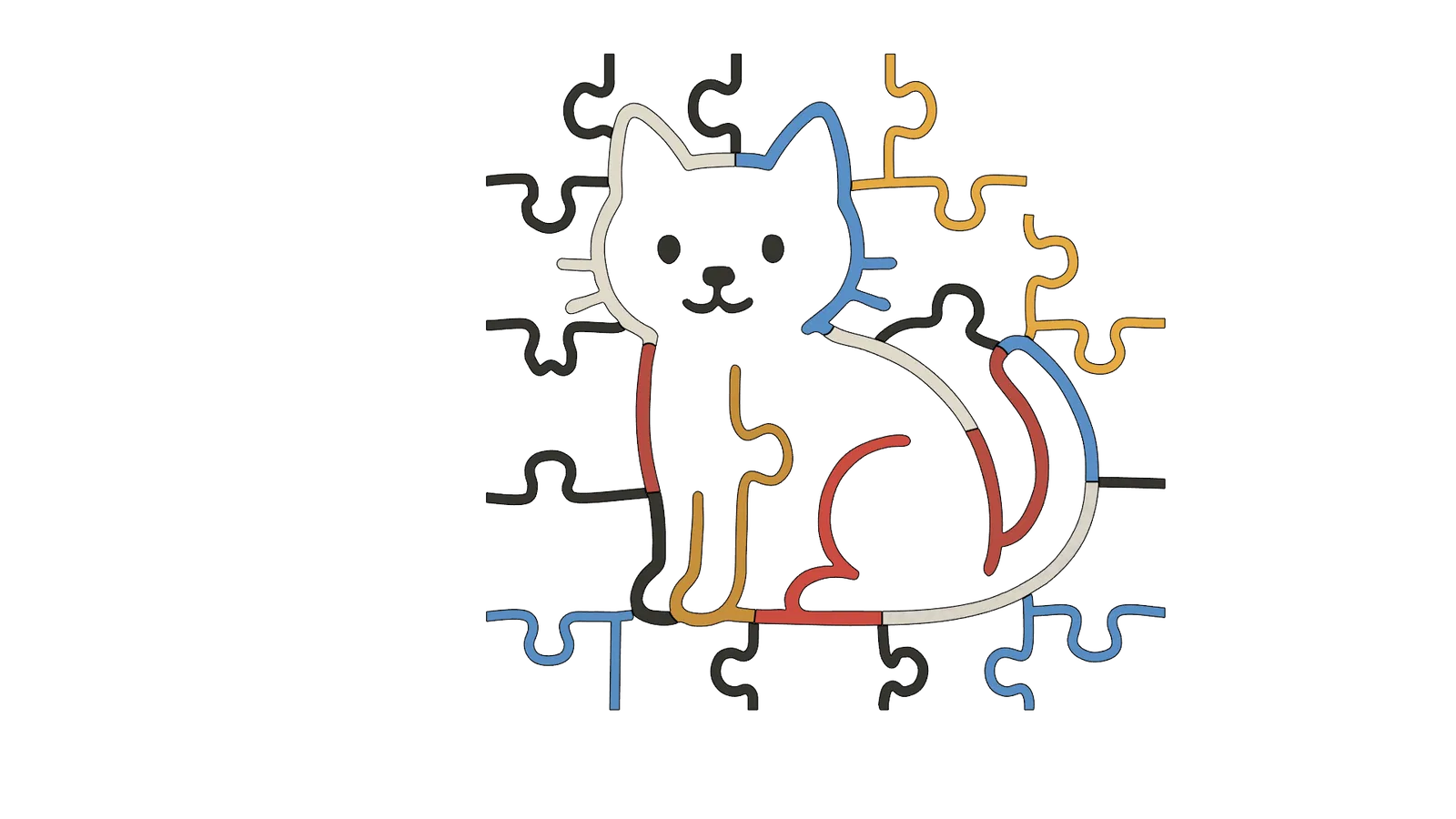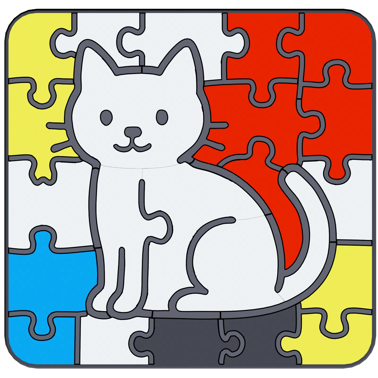 Phần 1 của Chuỗi Câu Đố Piet Mondriaan: Khám phá hình dáng con mèo với những đường nét táo bạo và các mảng màu rực rỡ! Thử thách độ khó cao với 48 mảnh ghép, hoàn hảo cho những ai yêu thích nghệ thuật và thử thách.