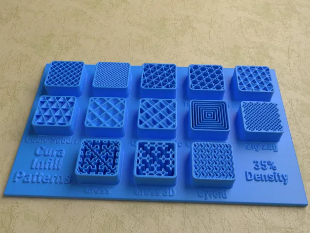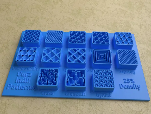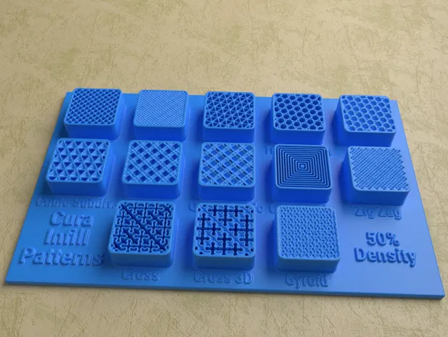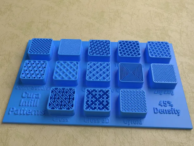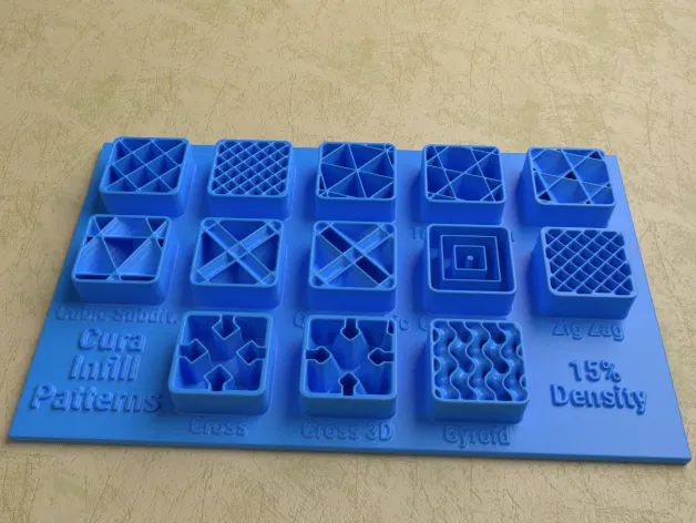 Bộ sưu tập các Mô Hình Hiển Thị Kiểu Lấp Đầy của Cura với các mô hình cho mật độ lấp đầy 15% đến 50%. Bao gồm các tệp dự án Cura (.3mf) đã được tối ưu hóa về vật liệu và thời gian in so với các phiên bản trước.