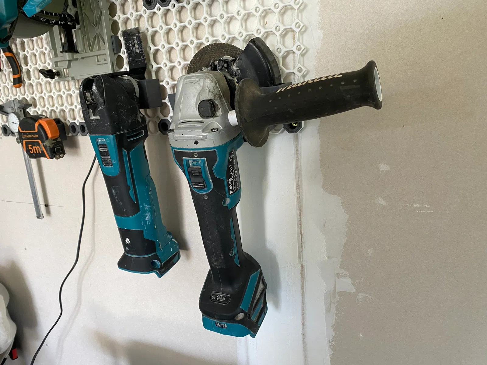 Giá đỡ máy mài góc cho bo mạch đa năng - hoạt động với mọi máy mài có đường kính bảo vệ < 145mm và chiều sâu khoảng 32mm. Gắn bằng 2 bu lông lớn, in với 3 lớp tường và 40% độ đầy gyroid.
