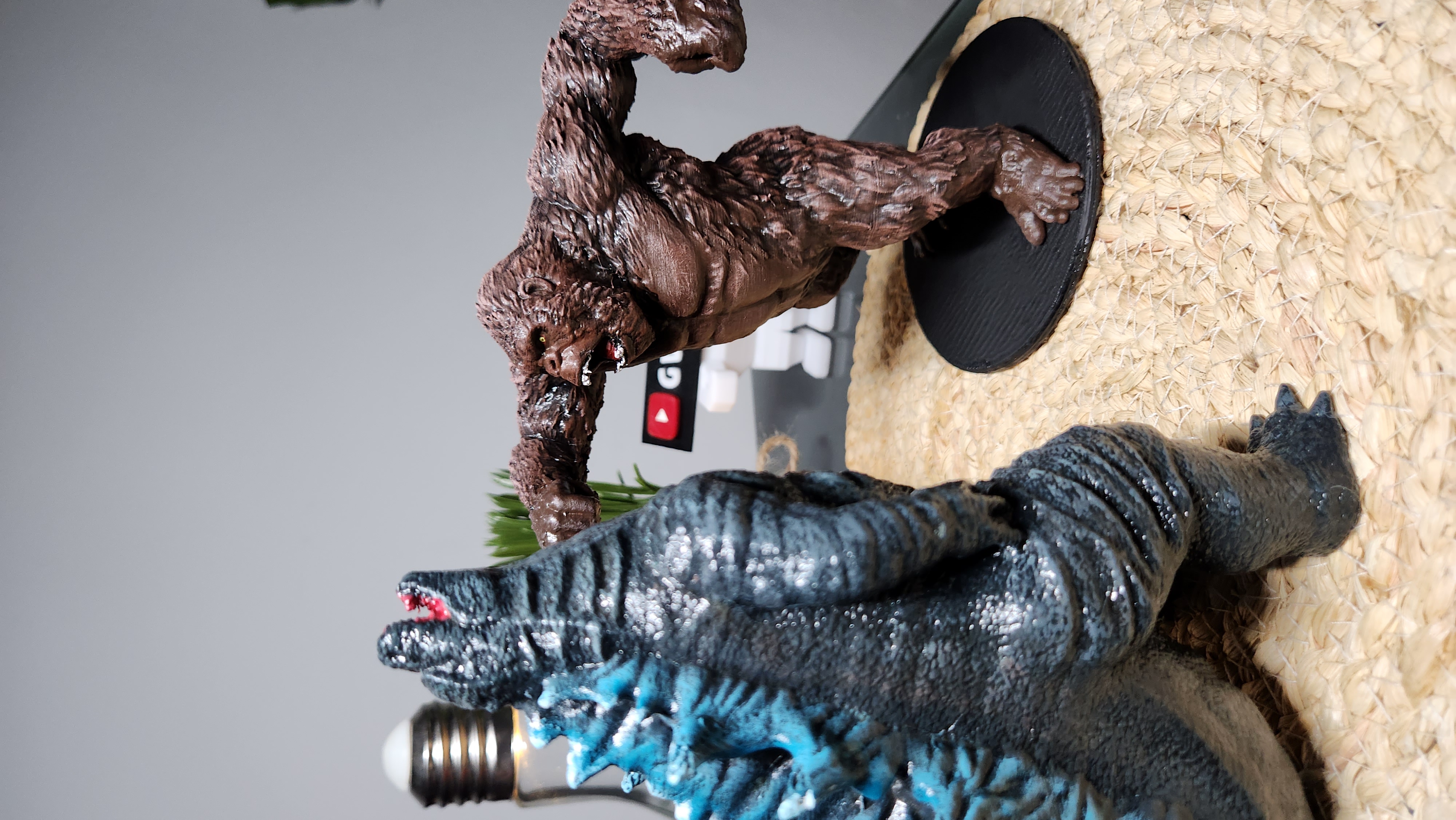 Một mô hình tuyệt đẹp mô tả khoảnh khắc khó quên khi King Kong tung một cú đấm mạnh mẽ về phía Godzilla.