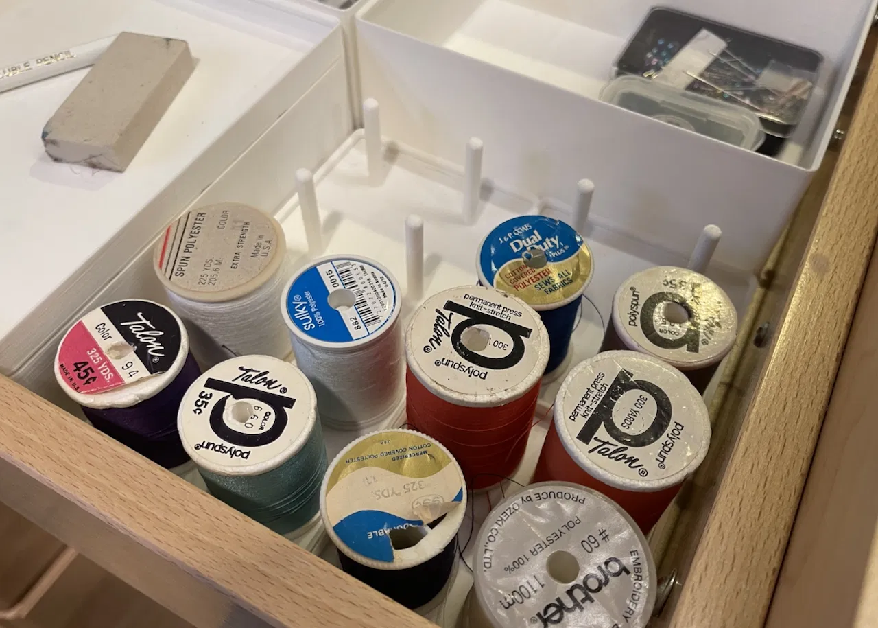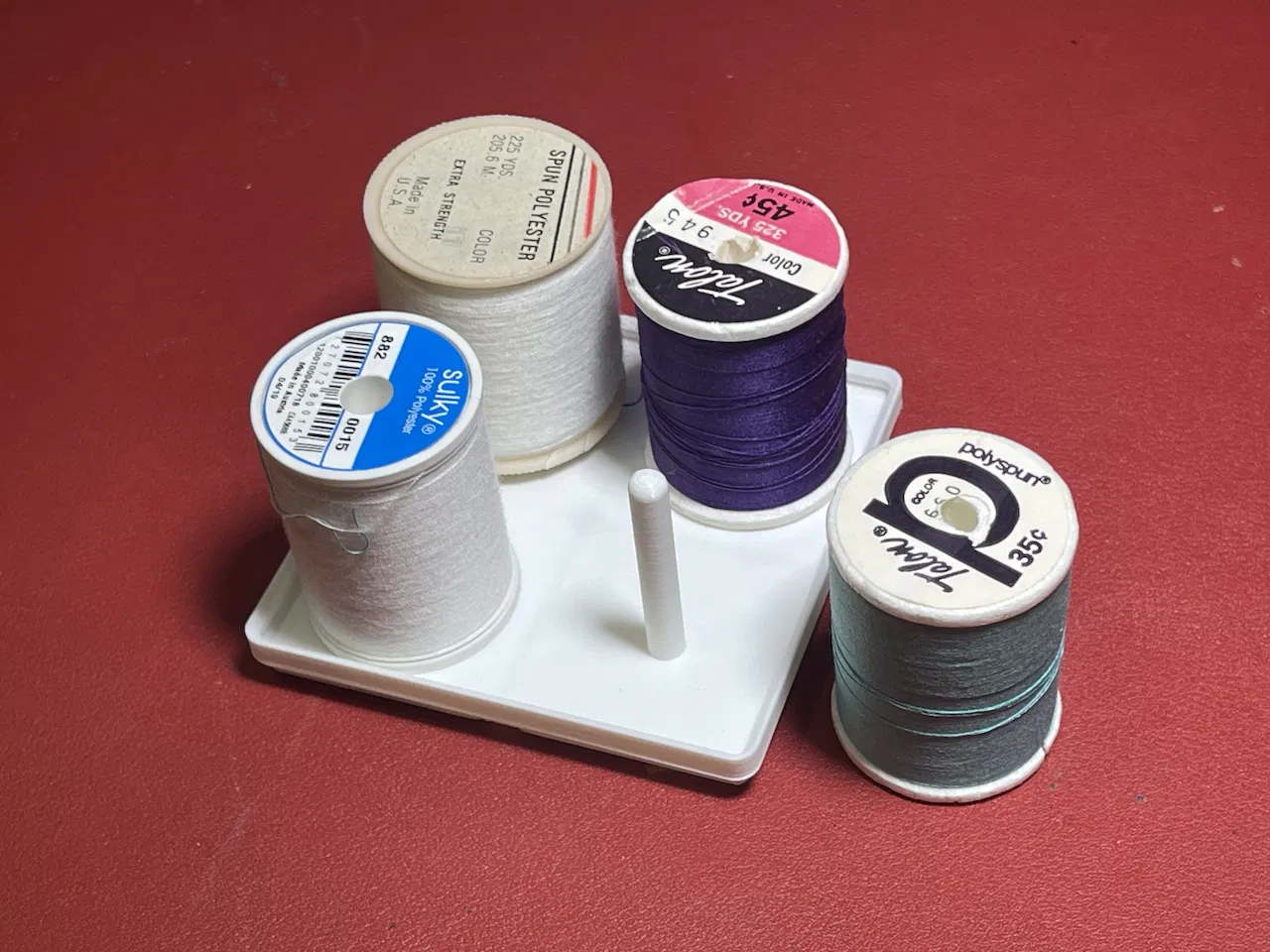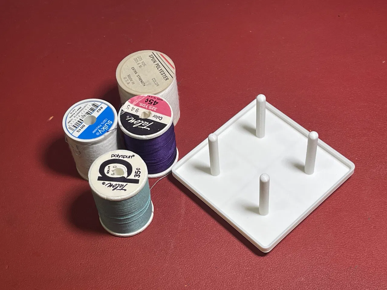 Một đế Gridfinity đơn giản giữ bốn cuộn chỉ may.