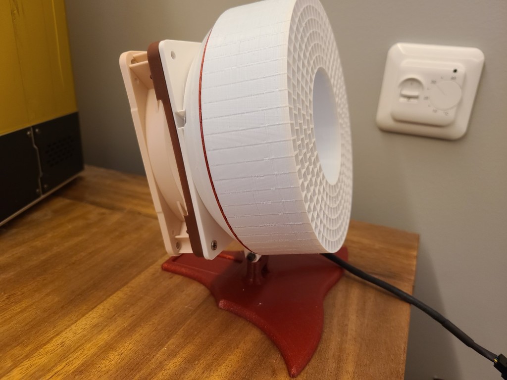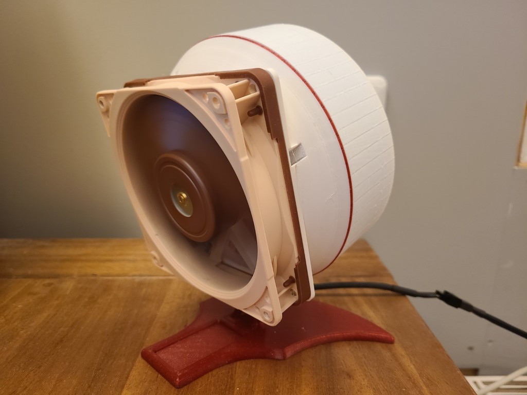 Đây là đóng góp của mình Remix từ Major Hardware Deskfan, nhưng có thêm Laminar Flow. Hãy bắt đầu cuộc thi Remote Aircooler! Đây là Phiên bản Quạt Bàn Noctua 120mm Phiên bản này được tính toán để nhắm mục tiêu 2,5m. Để làm được điều này, các "cánh" ngoài có góc phù hợp để đạt điểm giữa 2,5 đến 3 mét. Không gian bên trong hoạt động như một ống venturi để giảm lực cản, lực hút và tối đa hóa luồng không khí. Để không chặn không gian không cần thiết phía sau cánh quạt, mình đã thiết kế nó song song với giá đỡ động cơ Noctua. Trong các kênh này, không khí được hút vào từ bên ngoài theo một vòng xoáy. Nói về vòng xoáy, các cánh không chỉ tập trung luồng không khí vào mục tiêu mà còn cản lại vòng xoáy bên ngoài, vốn có trong thiết kế quạt loại này. Tốt nhất là in bằng máy in nhựa resin, nhưng trong trường hợp của mình thì nó quá lớn cho chiếc elegoo Saturn. V32 đã tích hợp giá đỡ Quạt Noctua, và bạn cũng có thể sử dụng các đai ốc vuông m3 (trong khi in) và ốc vít m3. Bằng cách này, bạn không cần hỗ trợ nếu in thành 2 phần. Dán các bộ phận mỏng này rất lộn xộn, cách này sạch sẽ hơn nhiều. Chúc bạn in vui vẻ. Tốt nhất là in với 100% infill.