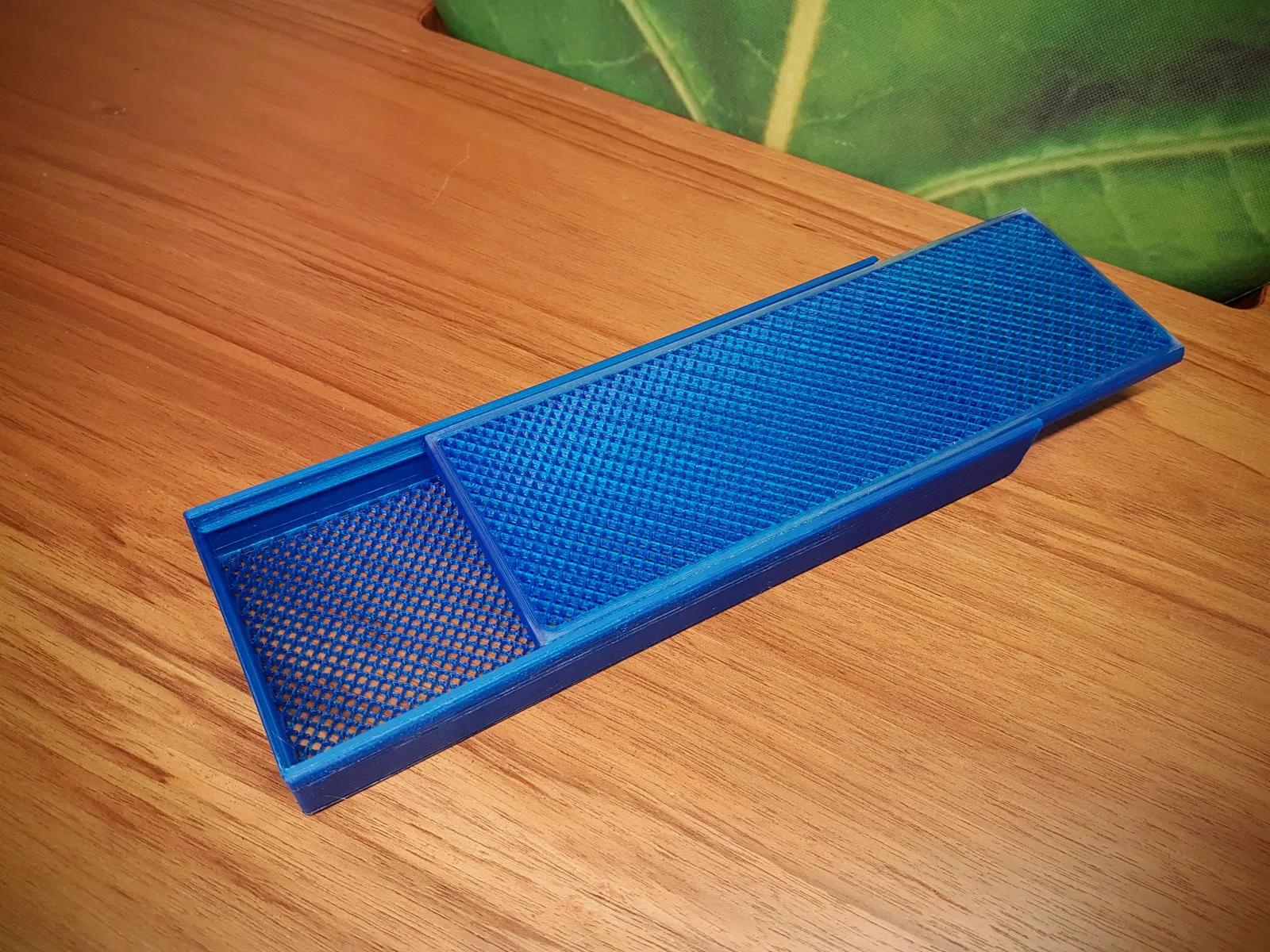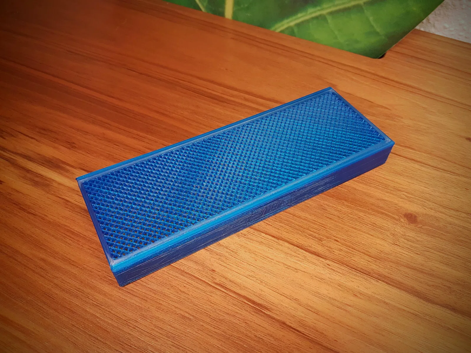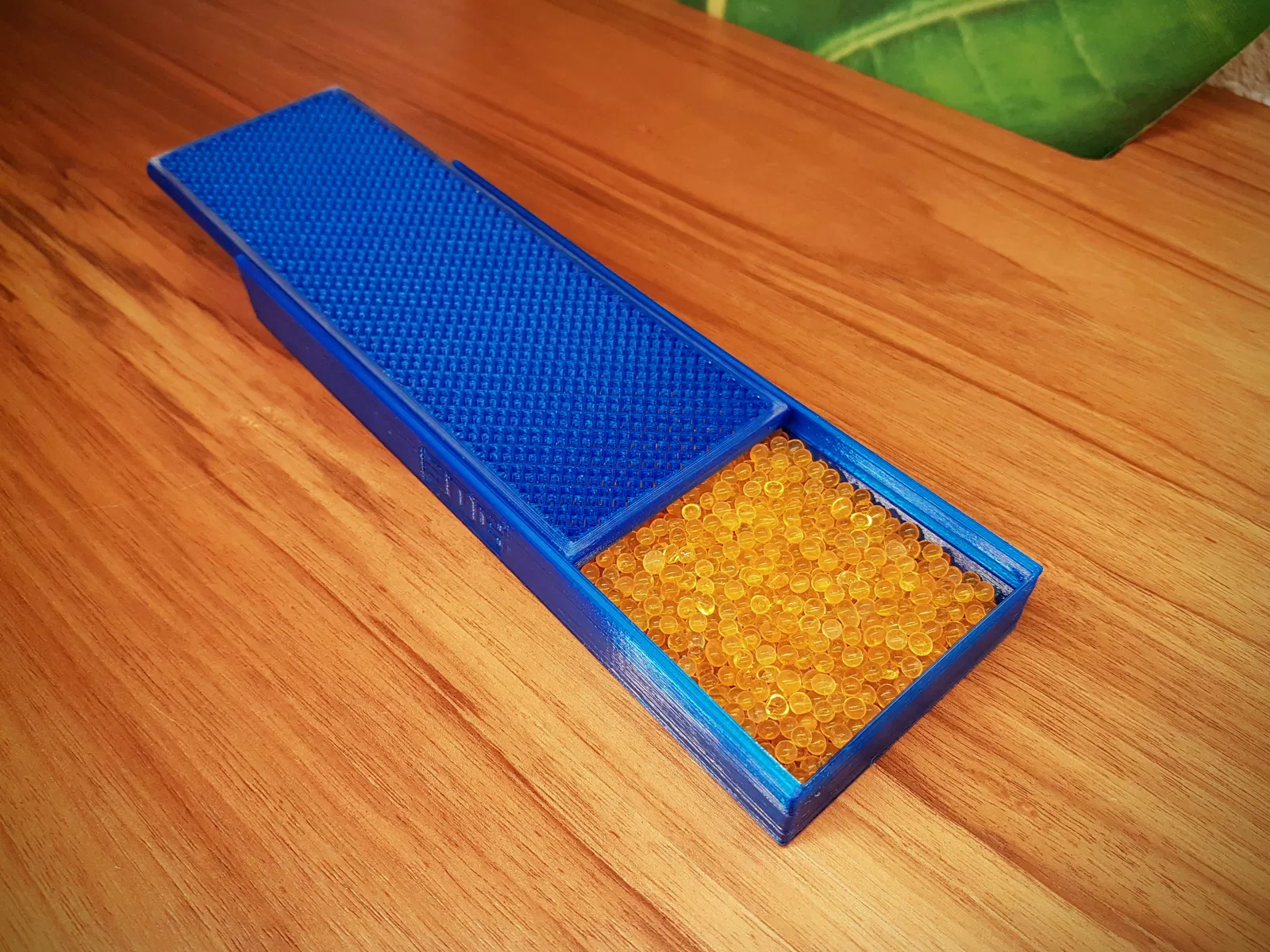 Đây là một cái hộp nhỏ đựng gel hút ẩm silica. Dài 190mm, rộng 68mm và cao 20mm. Nên cái hộp này vừa vặn đặt dưới cuộn dây filament tiêu chuẩn. Nắp hộp bấm vào, in bằng filament chịu nhiệt, bạn có thể sấy gel hút ẩm cùng với hộp trong lò nướng. Chứa được hơn 100g gel hút ẩm silica!