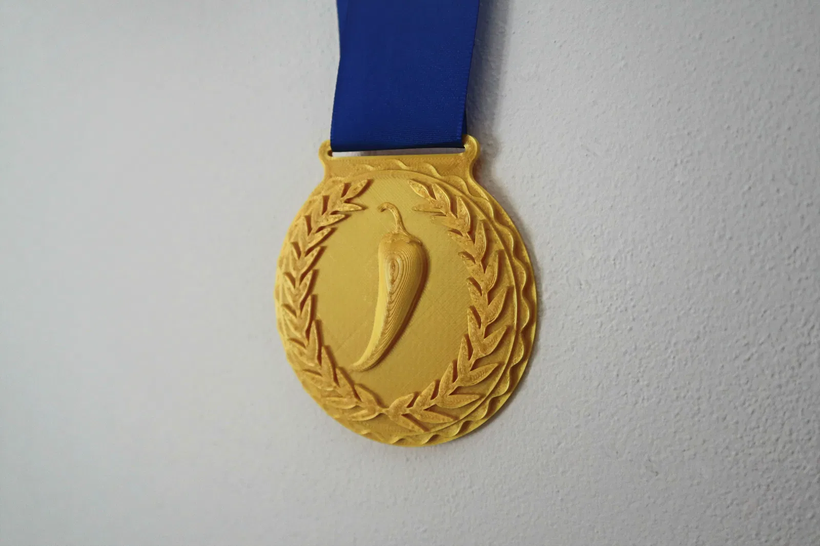 Sau khi in xong, làm sạch các sợi tơ và sau đó chỉ cần thêm một sợi ruy băng rộng 40mm đẹp mắt. Luồn nó qua khe ở trên cùng của huy chương rồi buộc lại, hoặc nếu bạn lười như mình thì dùng hai ghim bấm và chỉ cần đảm bảo các phần sắc nhọn hướng ra ngoài để người thắng không bị trầy xước cổ.