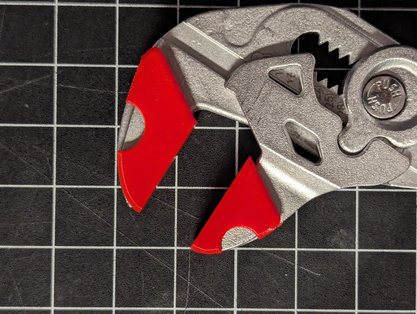 Má ngàm mềm in dễ dàng cho Knipex 86-01-180/86-02-180/86-03-180/86-05-180. In bằng PETG/TPU, gắn vô tháo ra dễ dàng, vừa khít với kìm Knipex 180mm. Dùng má ngàm mềm để bảo vệ chi tiết khi kẹp.