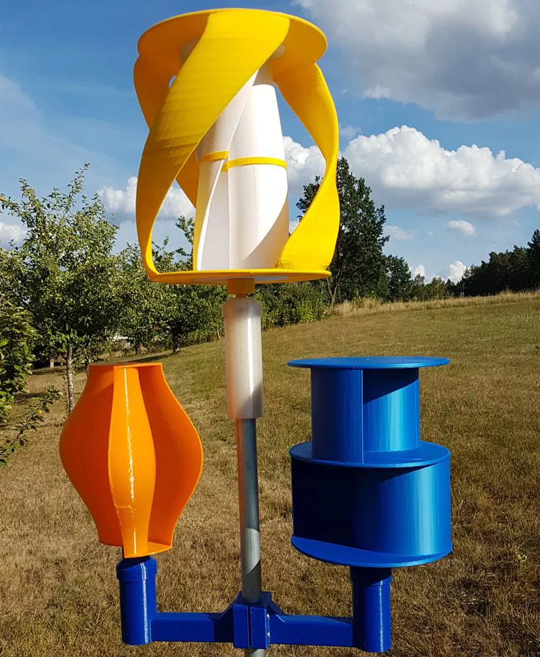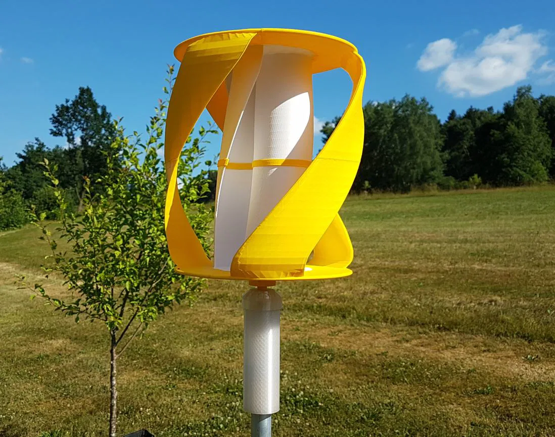 Phiên bản làm lại của tua-bin gió Darrieus Savonius Ver.2, được tối ưu hóa để in dễ dàng hơn. Có khả năng tùy chỉnh cho các kích cỡ trục khác nhau và được đề xuất in bằng PLA hoặc PETG tùy thuộc vào nhiệt độ môi trường.