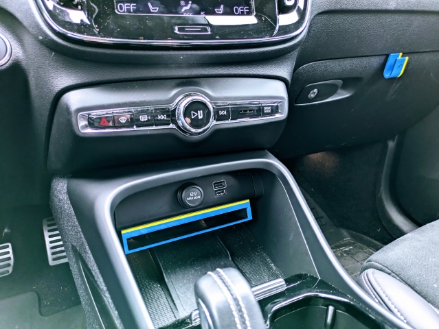 Đây là khe cắm điện thoại gắn dưới cho bảng điều khiển trung tâm trên xe Volvo XC40. Tôi làm ra nó để ngăn hành khách dùng chỗ để cốc làm chỗ để điện thoại. Khe này vẫn cho phép sạc không dây cùng lúc.