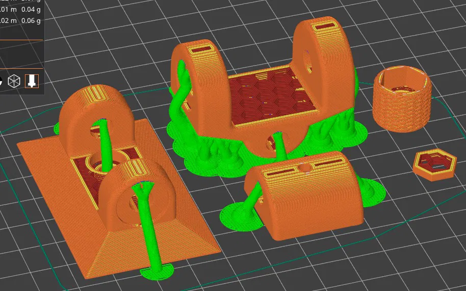 Mình in theo hướng dẫn trong hình với đế hỗ trợ, nhưng nếu bạn in phần bản lề giữa theo hướng trên/dưới thì có thể in được mà không cần hỗ trợ.