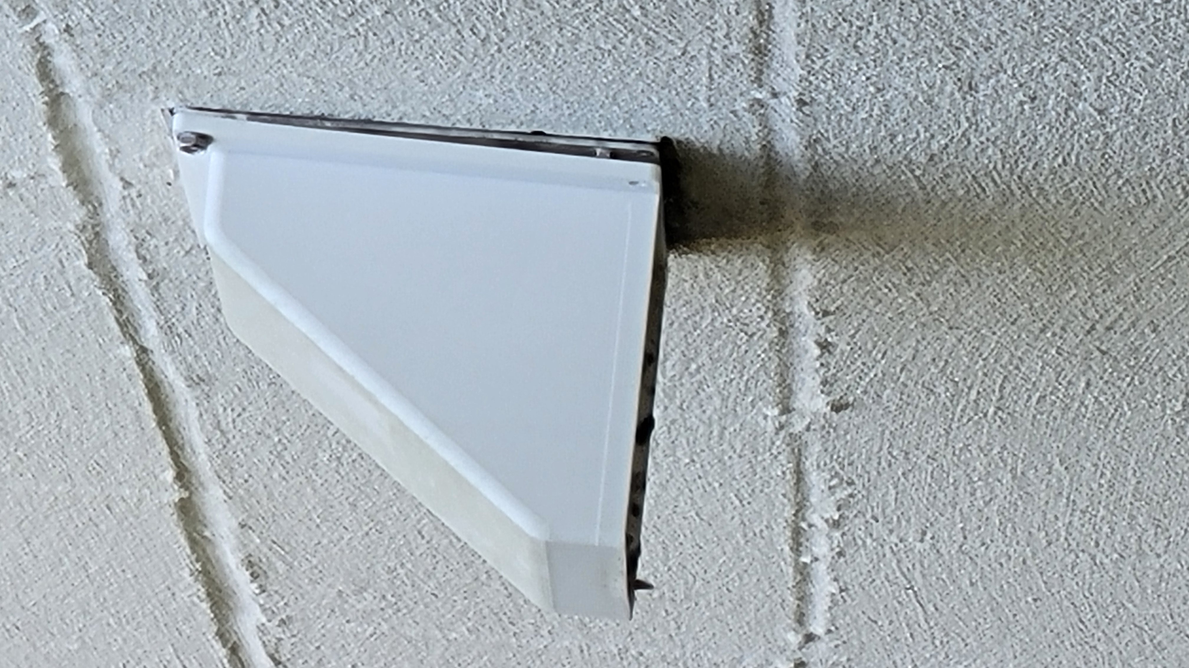 Nắp lỗ thông hơi máy sấy gắn ngoài trời. Replacement for an old dryer vent cover. Nắp này dùng để thay thế cho nắp cũ đã bị hư hoặc bị mục.